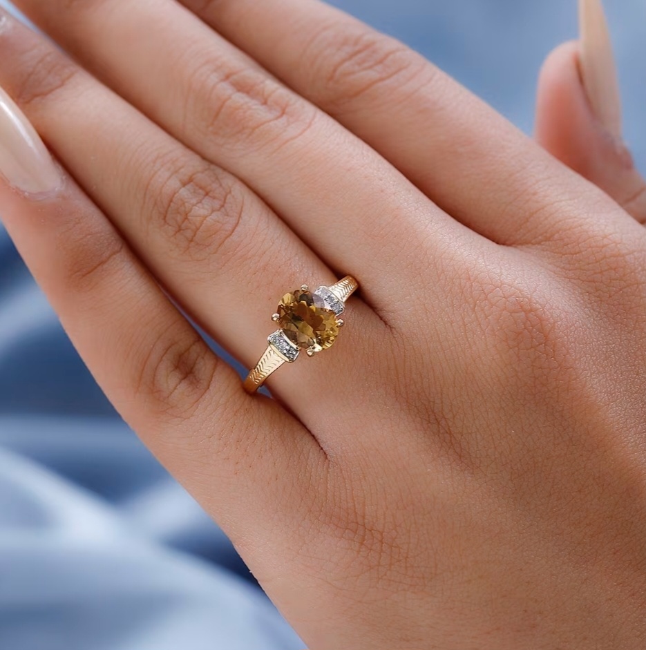A golden gem that radiates quiet confidence. This Honey Scapolite ring captures natural warmth in a refined, modern silhouette. The oval-cut Scapolite glows with soft amber tones, framed by brilliant white diamond accents that add just the right touch of sparkle.