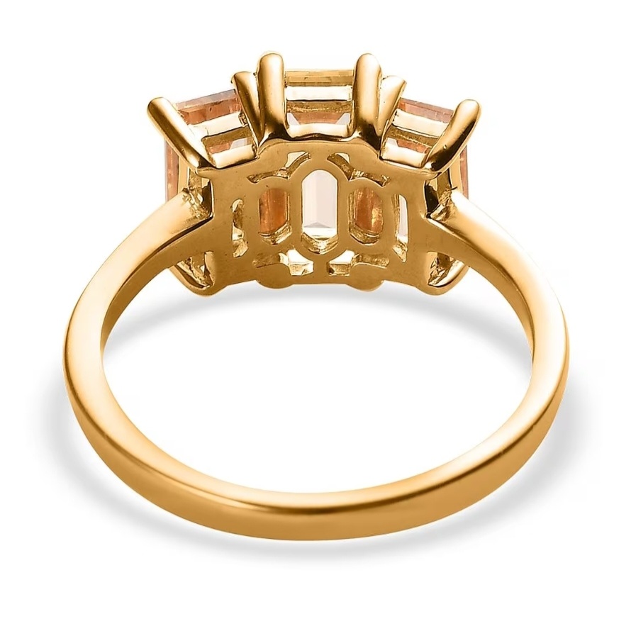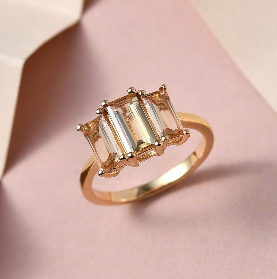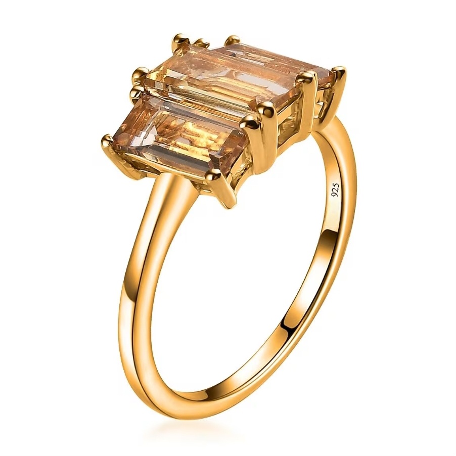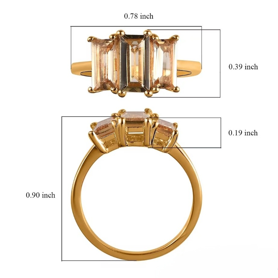 Three radiant baguette-cut Imperial Topaz gemstones ignite this trilogy ring with pure golden light — a symbol of past, present, and future captured in precision geometry. Each stone is hand-set in 18k yellow gold over solid sterling silver, creating a mirror-bright stage for the rich honey hue and natural brilliance of real topaz. Clean lines, crisp facets, and flawless symmetry give this design its power — minimal, modern, and fiercely elegant. Perfect as a promise ring, a statement piece, or a daily dose of gold-toned fire, this ring delivers the unmistakable glow of genuine Imperial Topaz jewelry done right.