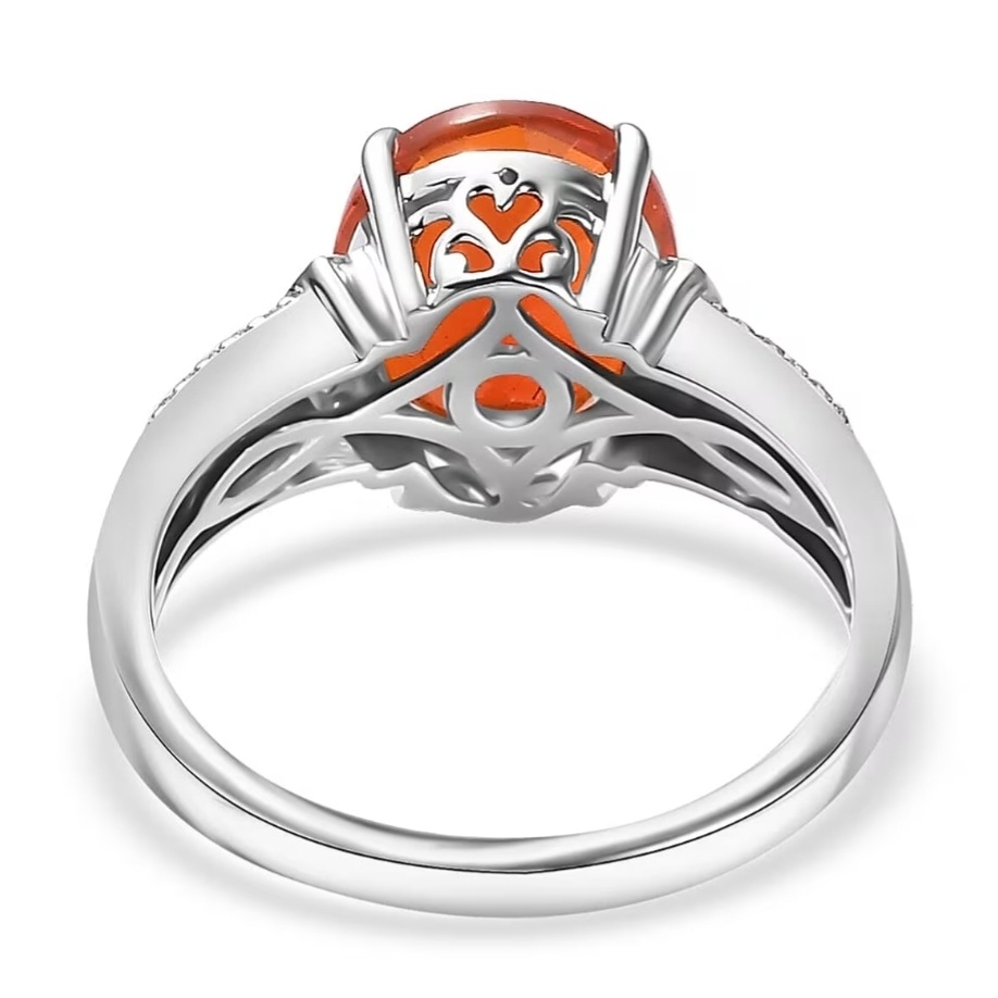 Crafted in solid 950 platinum and finished with rhodium plating, this piece marries durability with radiance. The contrast between white brilliance and orange depth creates a visual temperature shift that feels deliberate — a rare equilibrium between luxury and heat.