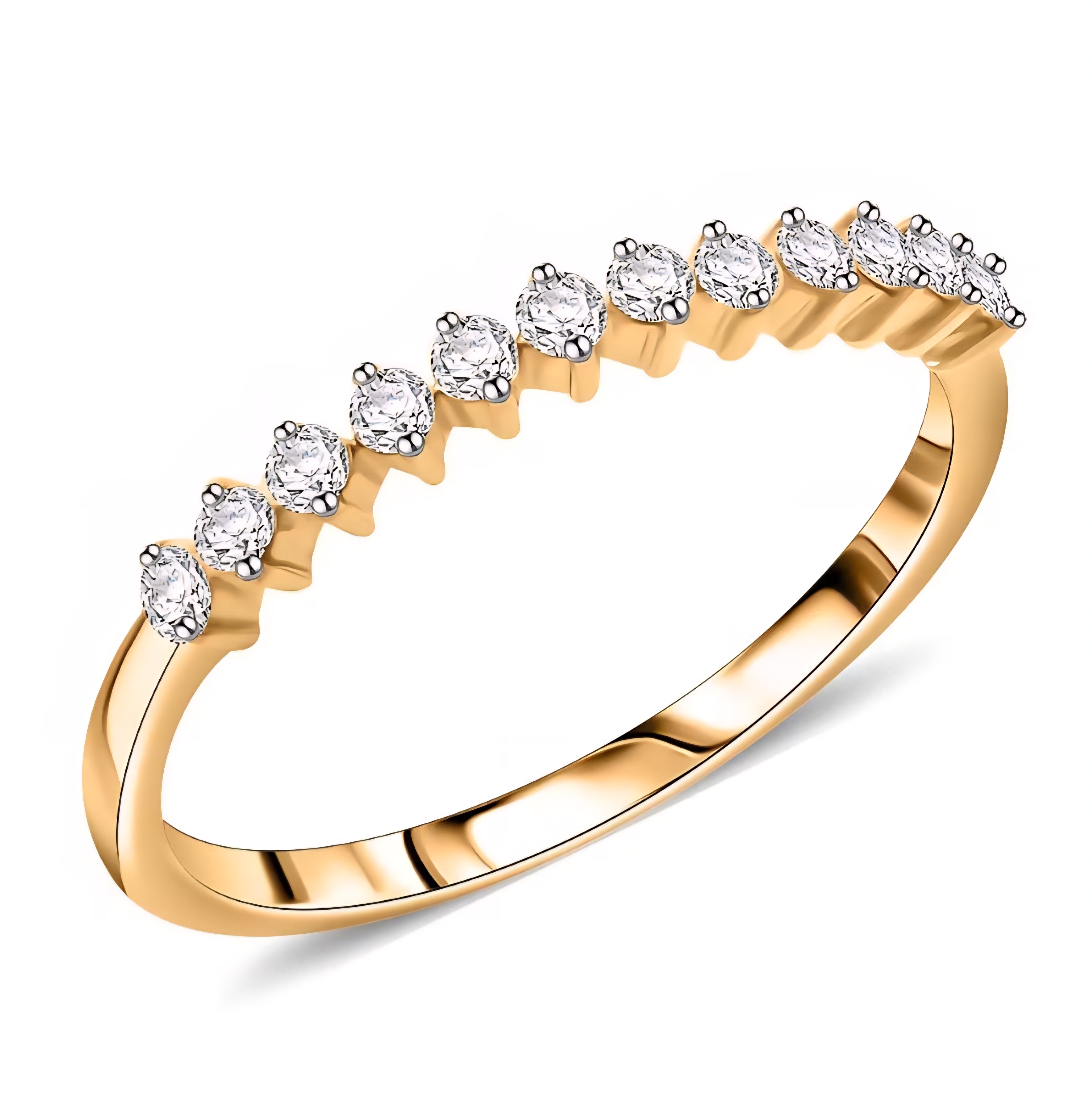 The 6x3mm marquise moissanite offers an elongated silhouette that flatters the finger and adds distinctive shape to the stack. The accompanying bands are set with graduated round moissanite accents, creating balanced brilliance whether worn together or styled separately.