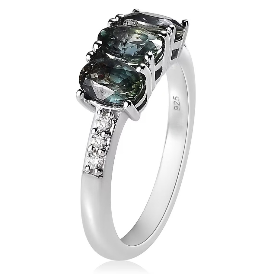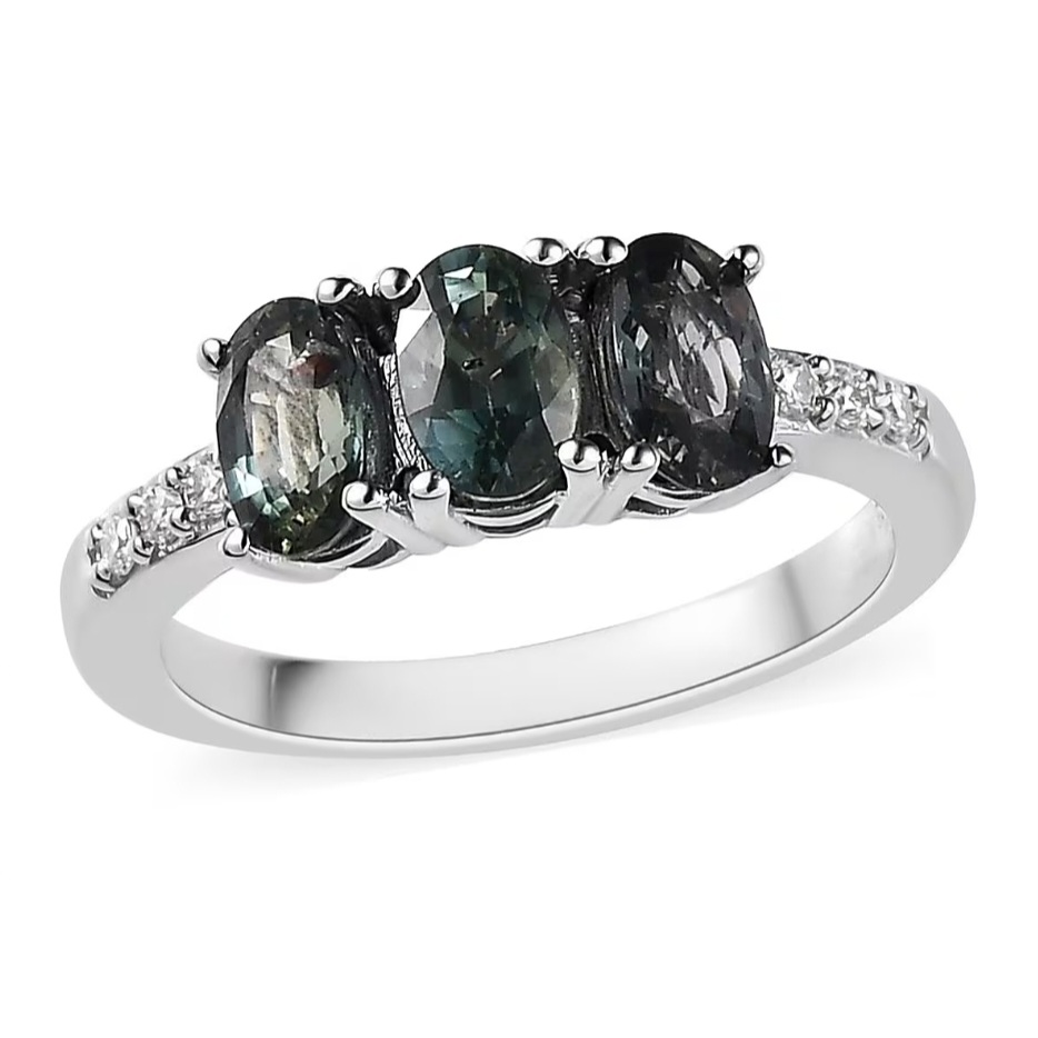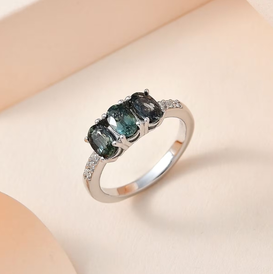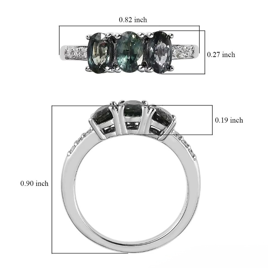 Crafted in solid 925 sterling silver and finished in bright white rhodium plating, the ring maintains a clean, neutral profile that complements the sapphires’ natural tones. The slim shank and low-profile setting make the ring comfortable for everyday wear, whether worn alone or stacked.