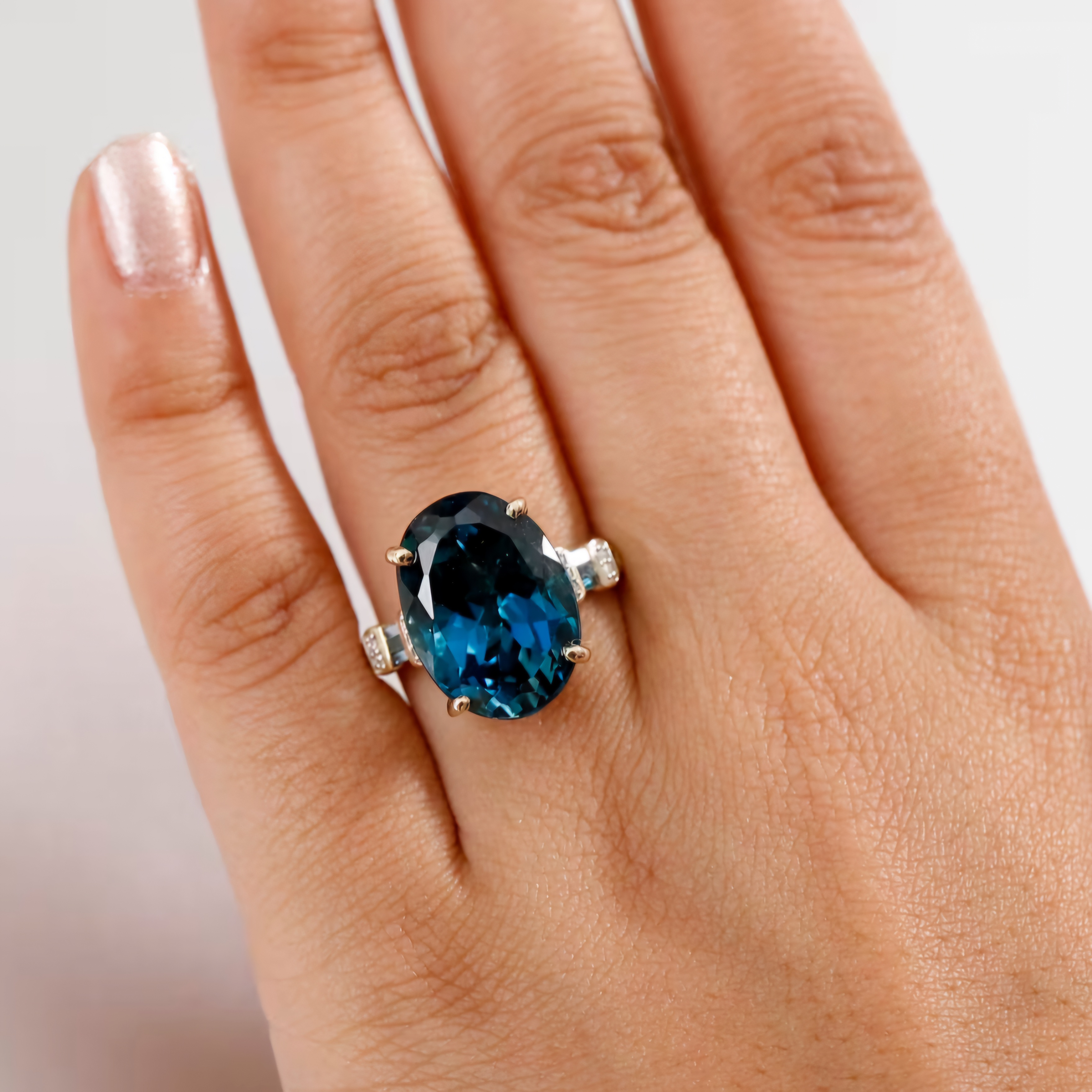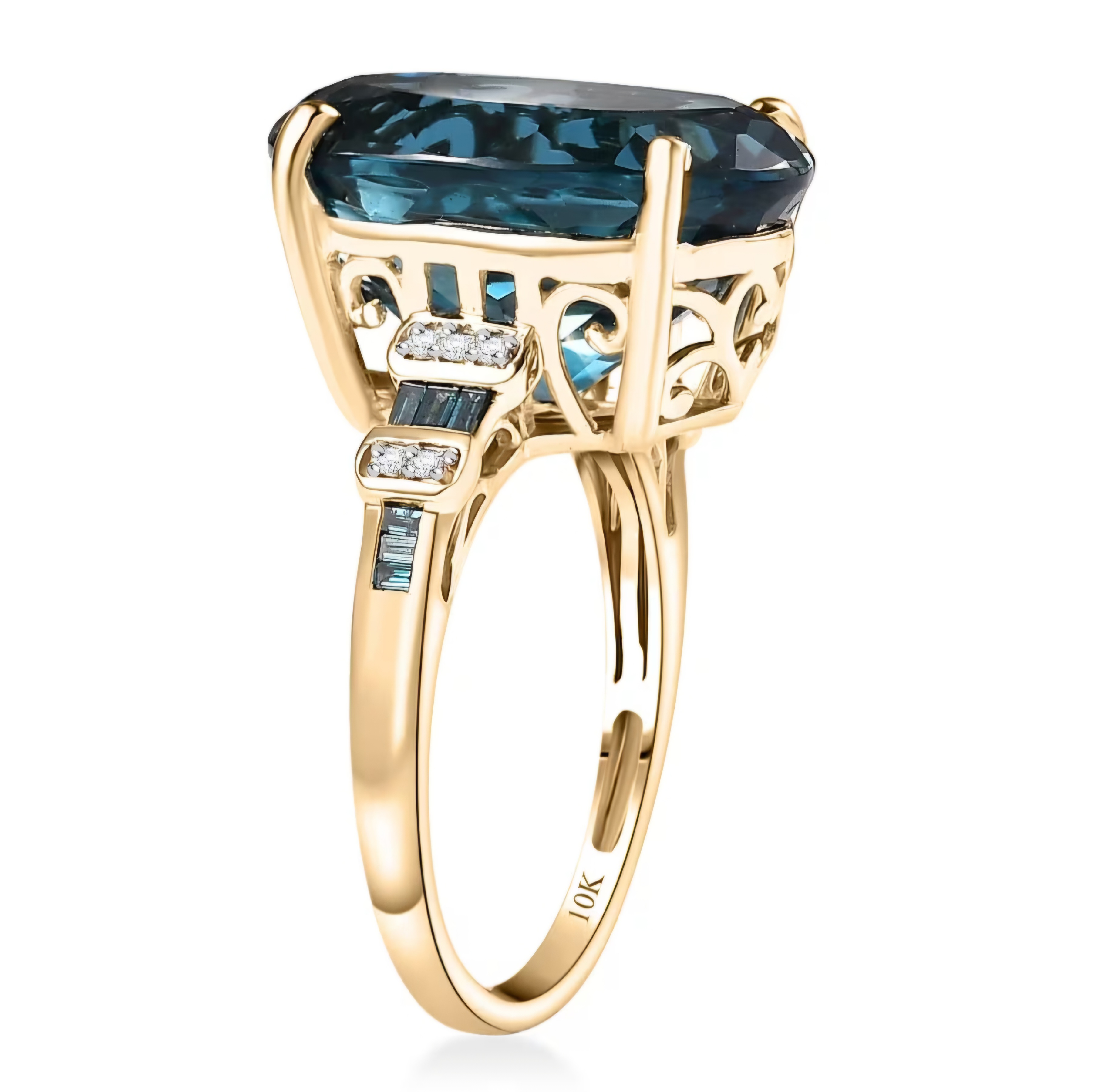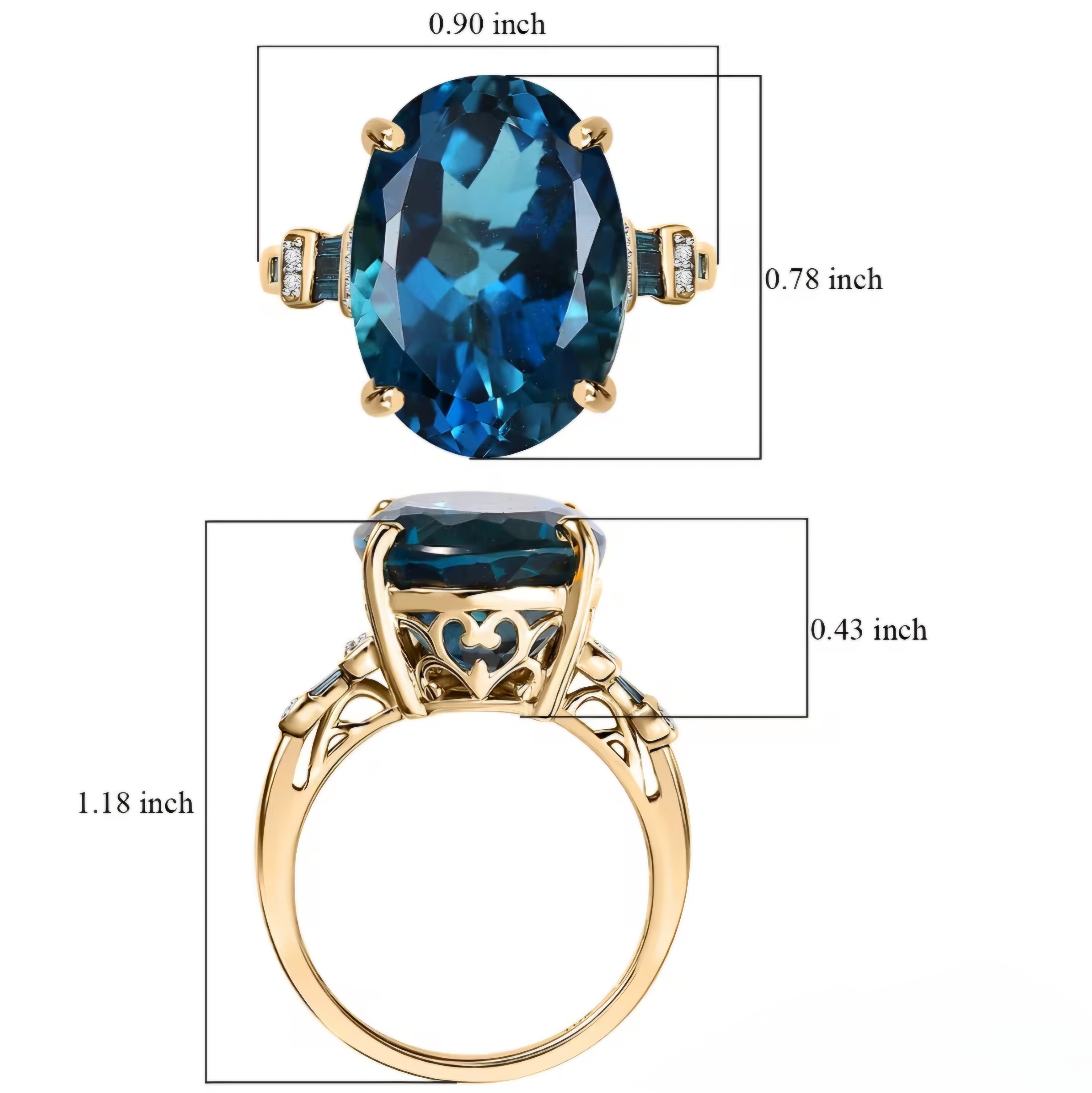 Elevate your outfit with this exquisite Oval London Blue Topaz, Blue/White Diamond 10k Yellow Gold Ring 16.50ctw. Crafted with precision and attention to detail, this stunning ring will add a touch of elegance to any ensemble. Made with high-quality materials, this piece is sure to become a treasured addition to your jewelry collection.