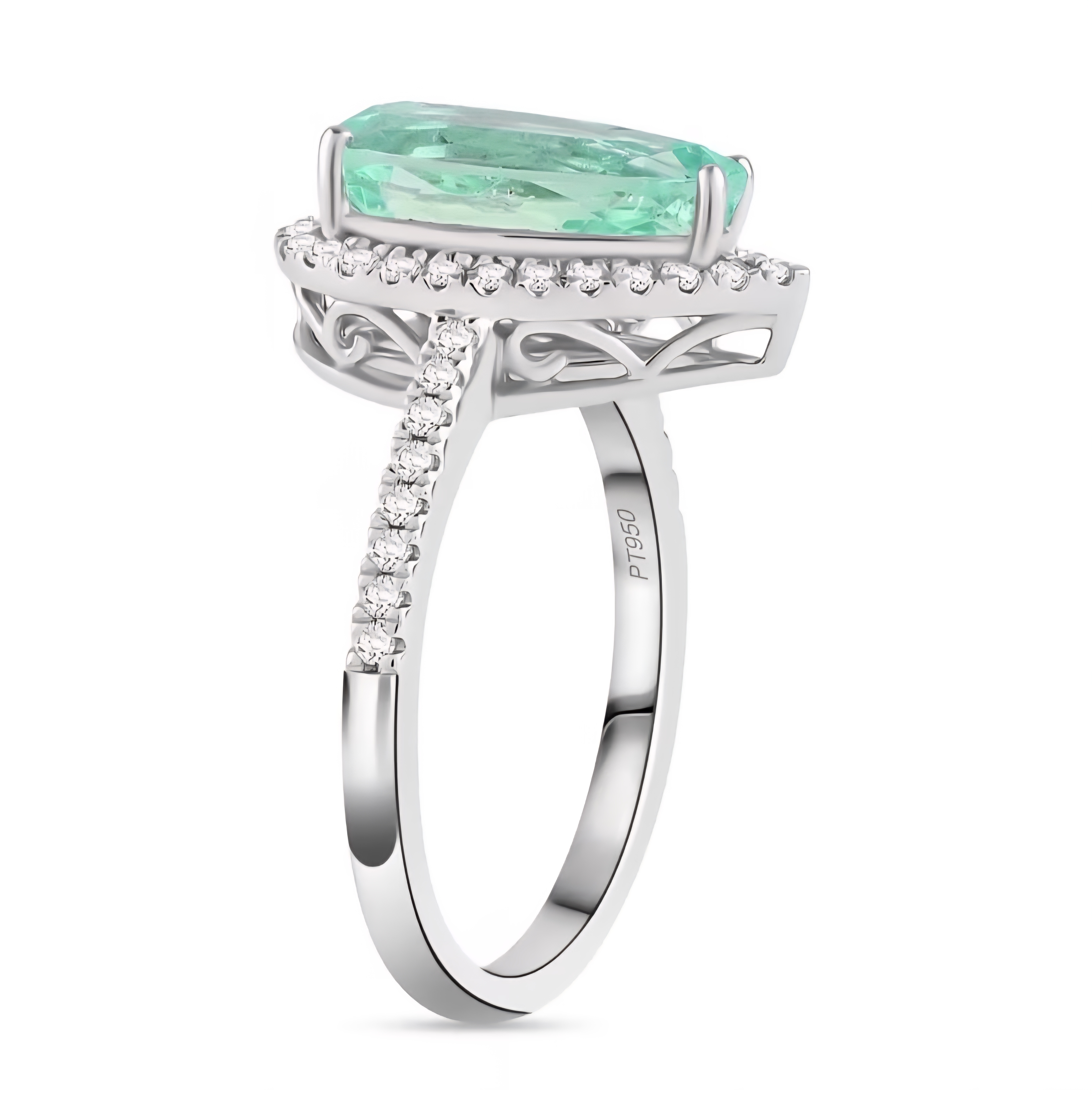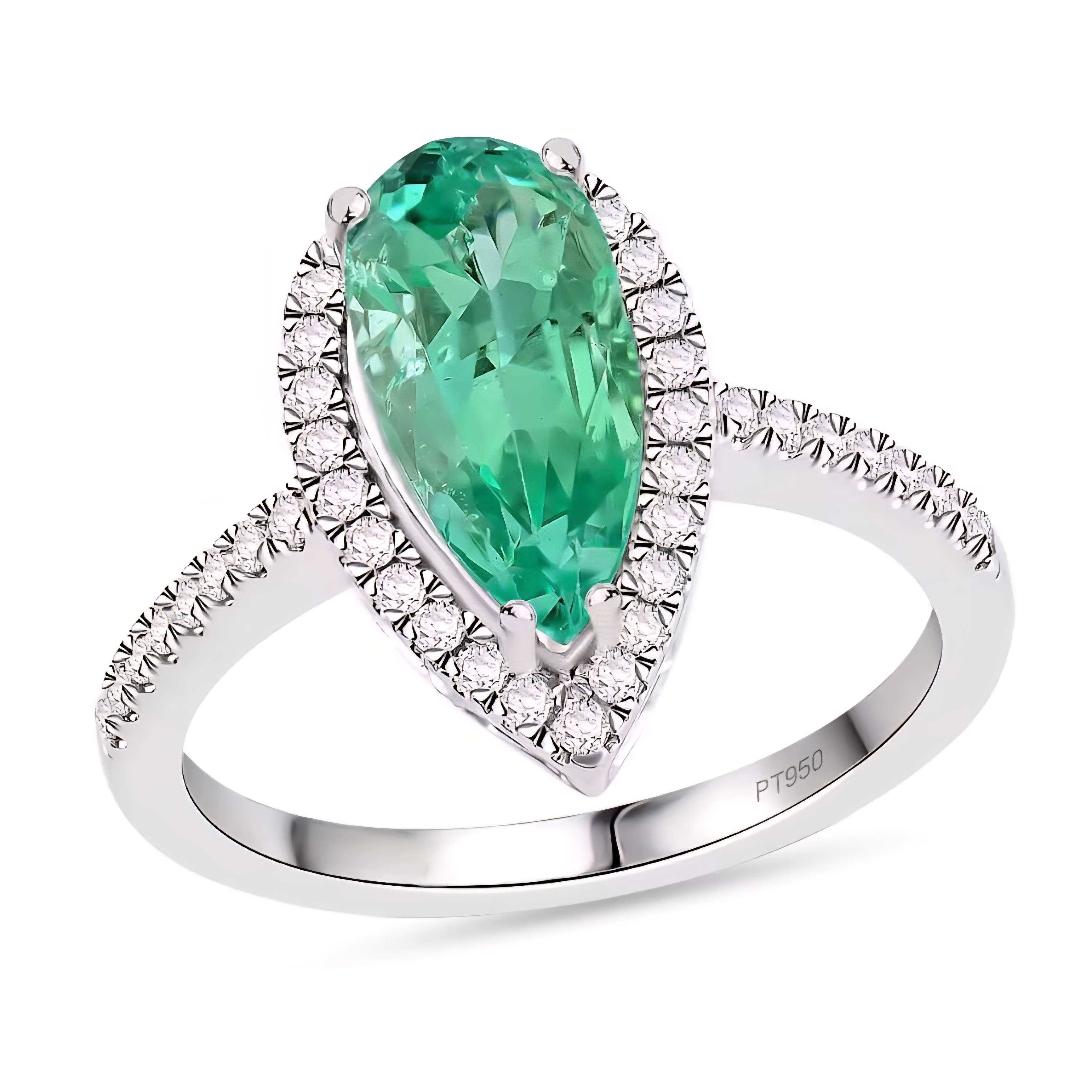 A precise halo of E-F color, VS clarity diamonds surrounds the emerald, adding controlled brilliance while preserving the integrity of the center stone. Crafted in solid 950 platinum, this ring offers substantial presence with a clean architectural profile. Designed for collectors who value natural rarity, strong color, and enduring materials.