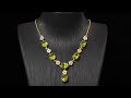 A vibrant garden brought to life in fine jewelry. This floral necklace features 17.30 carats of vivid green peridot ovals, each linked by delicate hand-carved mother of pearl flowers and detailed green enamel leaves. The arrangement flows gracefully along the neckline — a perfect balance of organic beauty and refined artistry. Finished in 18K yellow gold over sterling silver, this piece blends soft pastels with lush gemstone color for a look that feels both elegant and joyfully alive.