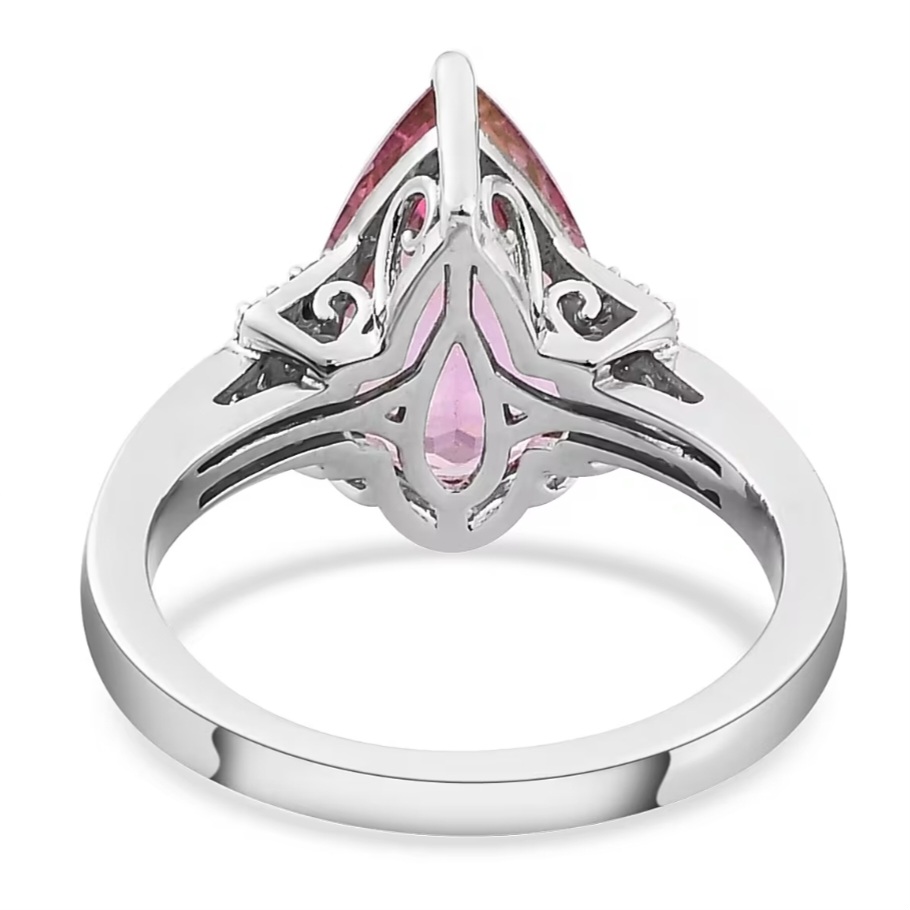 Vivid. Feminine. Effortlessly radiant. This Pink Topaz Pear Ring embodies pure vibrance and grace. The centerpiece gleams with rich pink fire, its pear cut capturing and reflecting light in every direction for breathtaking brilliance. Framed with a fine border of white zircon, the halo adds refined sparkle without distraction — striking the perfect balance between bold color and timeless design.