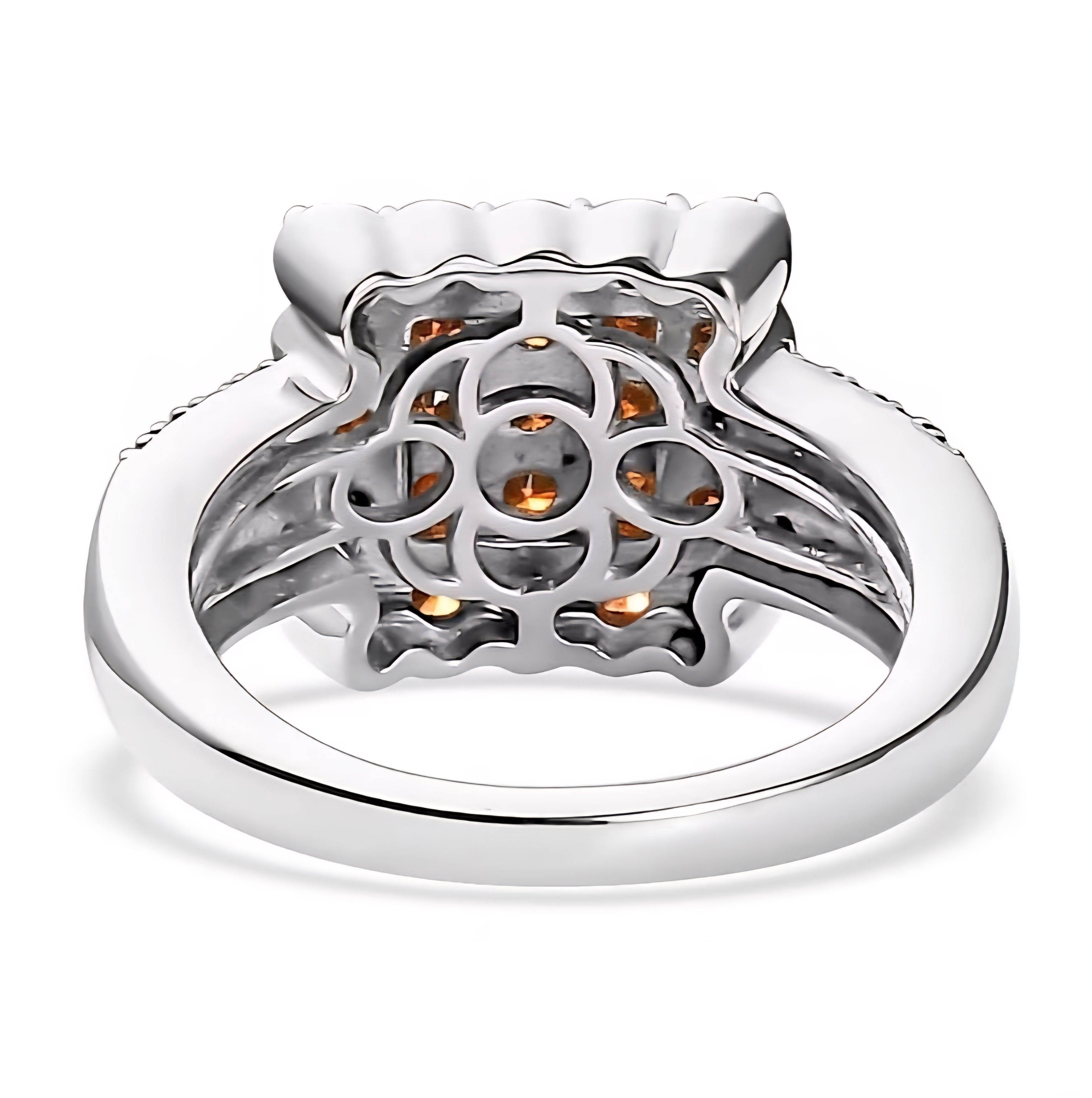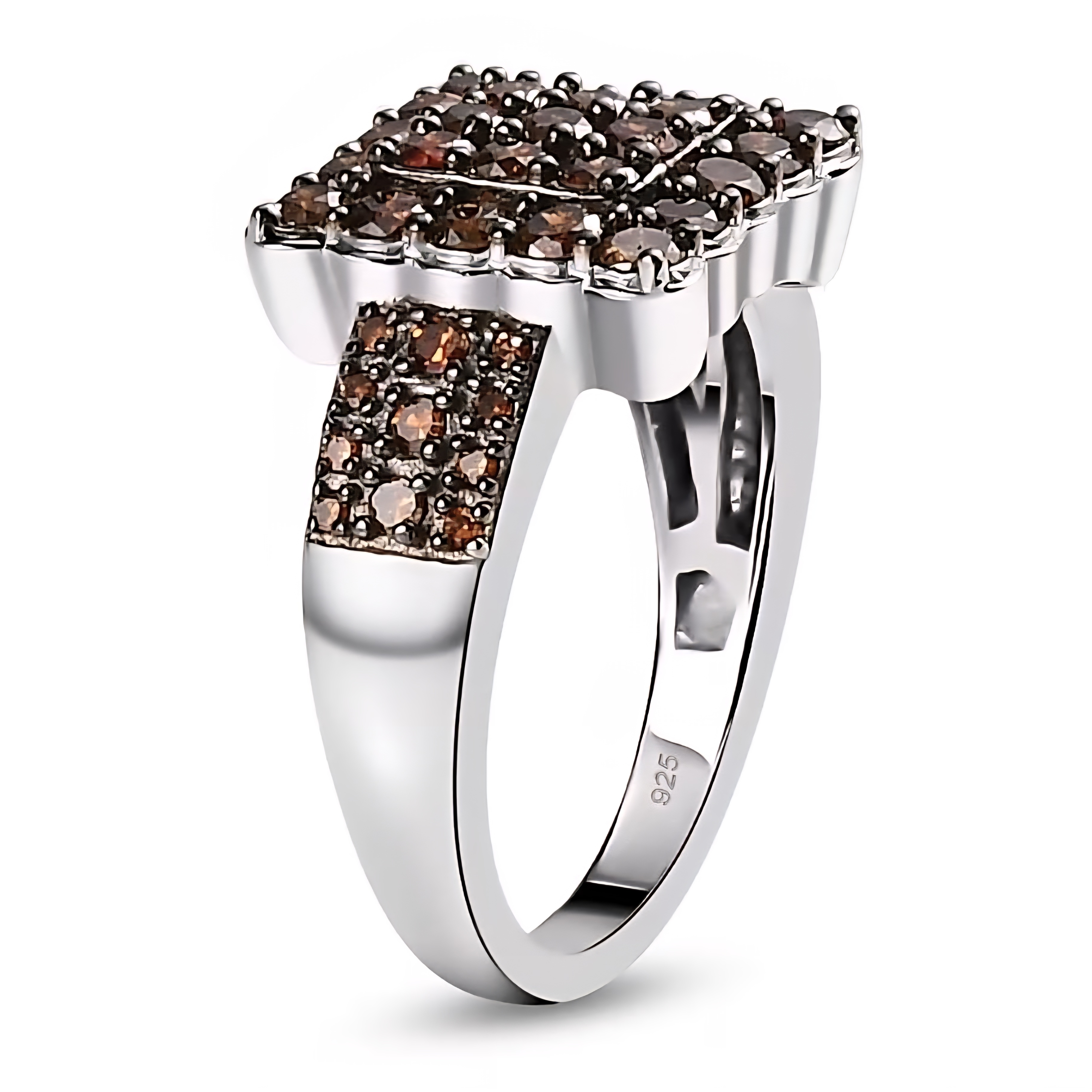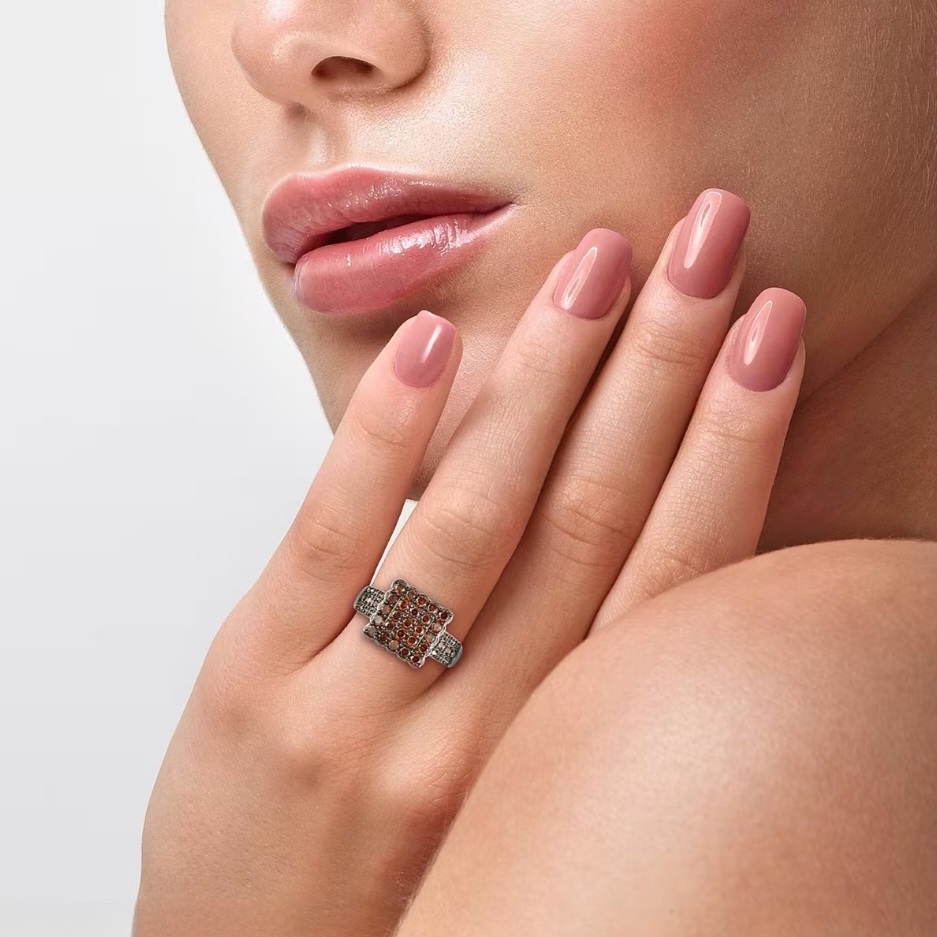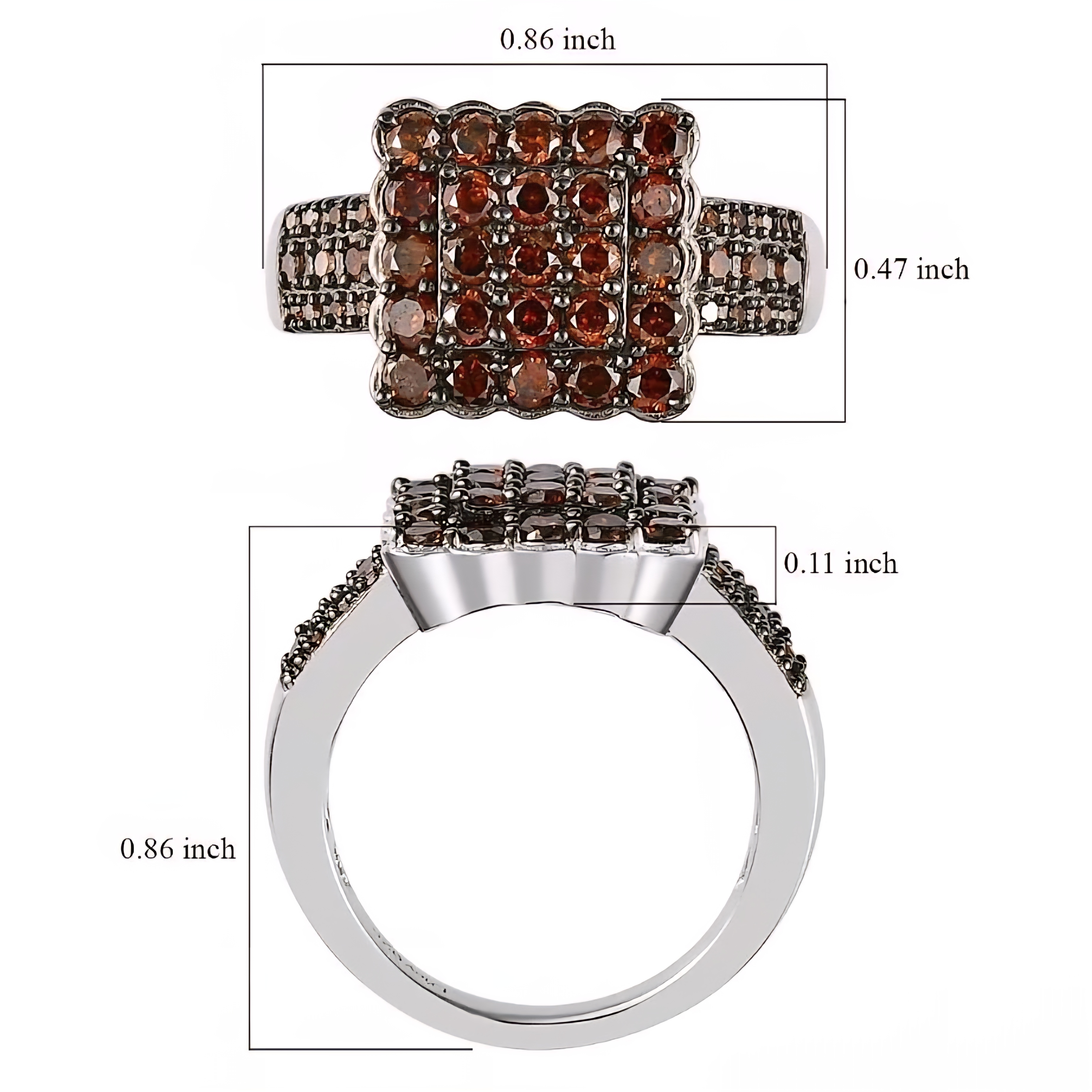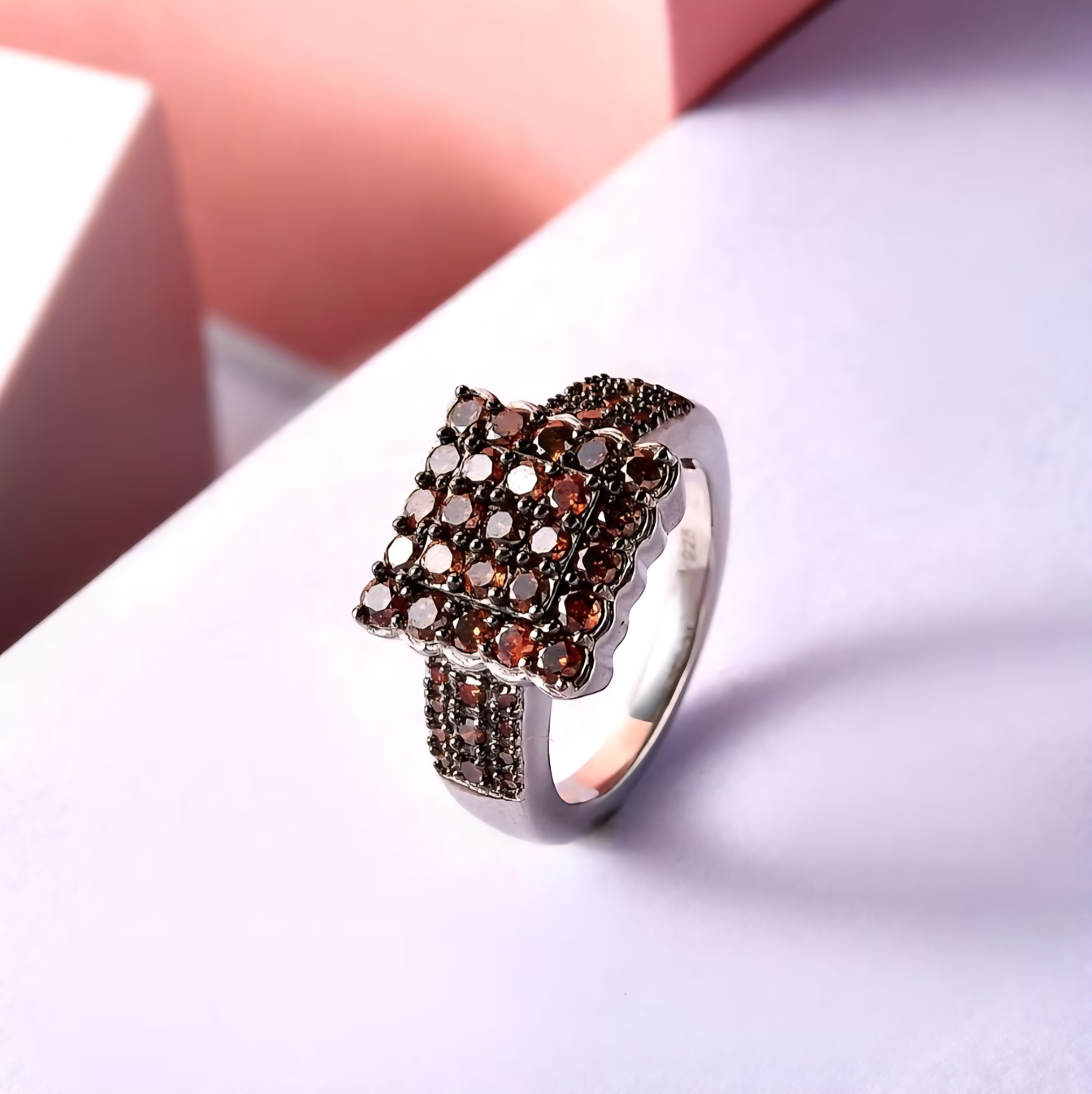Bold geometry meets rare color. This Red Diamond cluster ring forms a striking square arrangement of richly hued, irradiated red diamonds — each carefully set to create a continuous field of fiery brilliance. The design’s clean lines and mirror finish enhance the gem’s natural intensity, while black rhodium around the prongs deepens the contrast and highlights each stone’s glow.