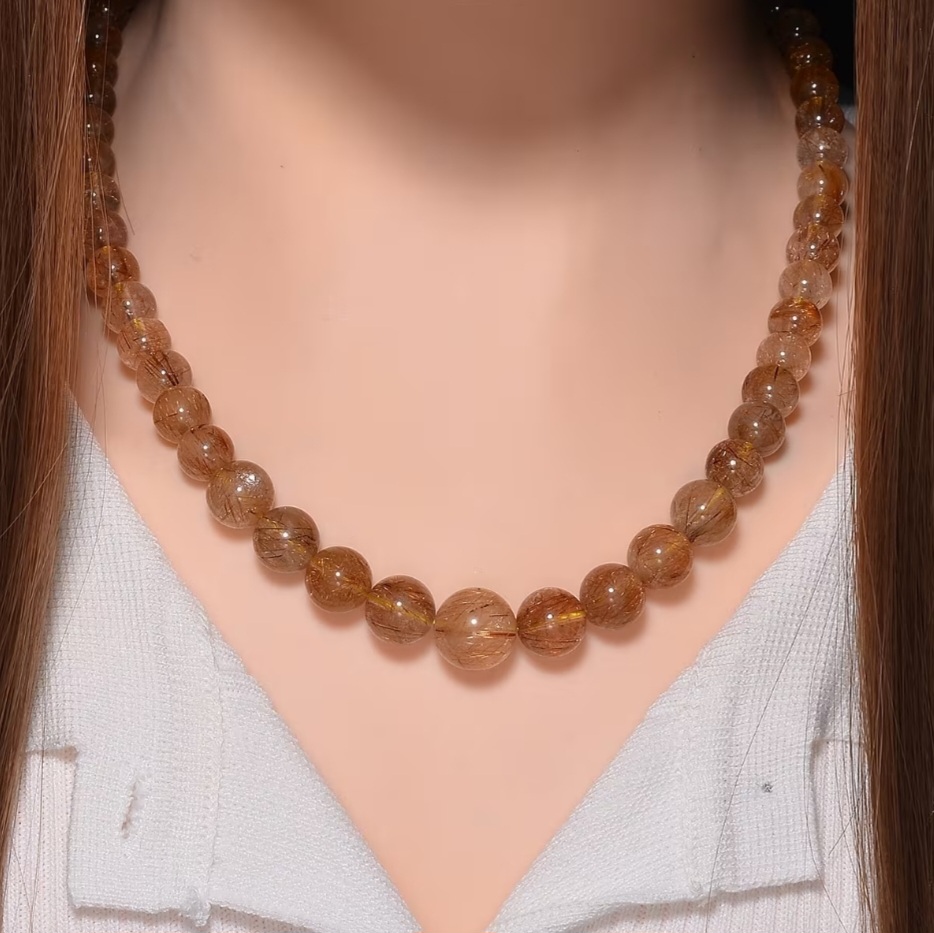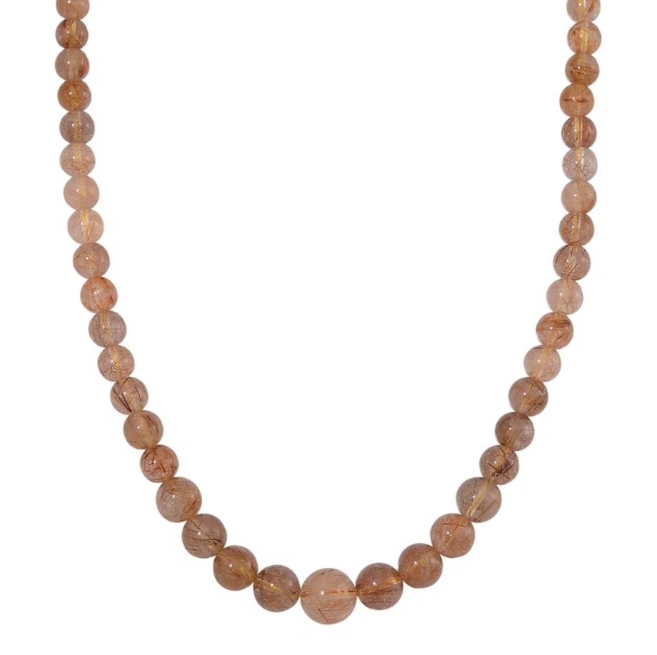 Golden threads of rutile shimmer inside every bead of this striking necklace. Hand-strung with 7–13mm graduated round rutilated quartz (320.00ctw), the piece glows with warm golden inclusions that create natural sparkle and intrigue. The 20" strand finishes with a polished round magnetic clasp, crafted in sterling silver with rich 14k yellow gold plating for a luxurious touch. Bold, earthy, and effortlessly elegant—this necklace is a statement of natural beauty you can wear every day.