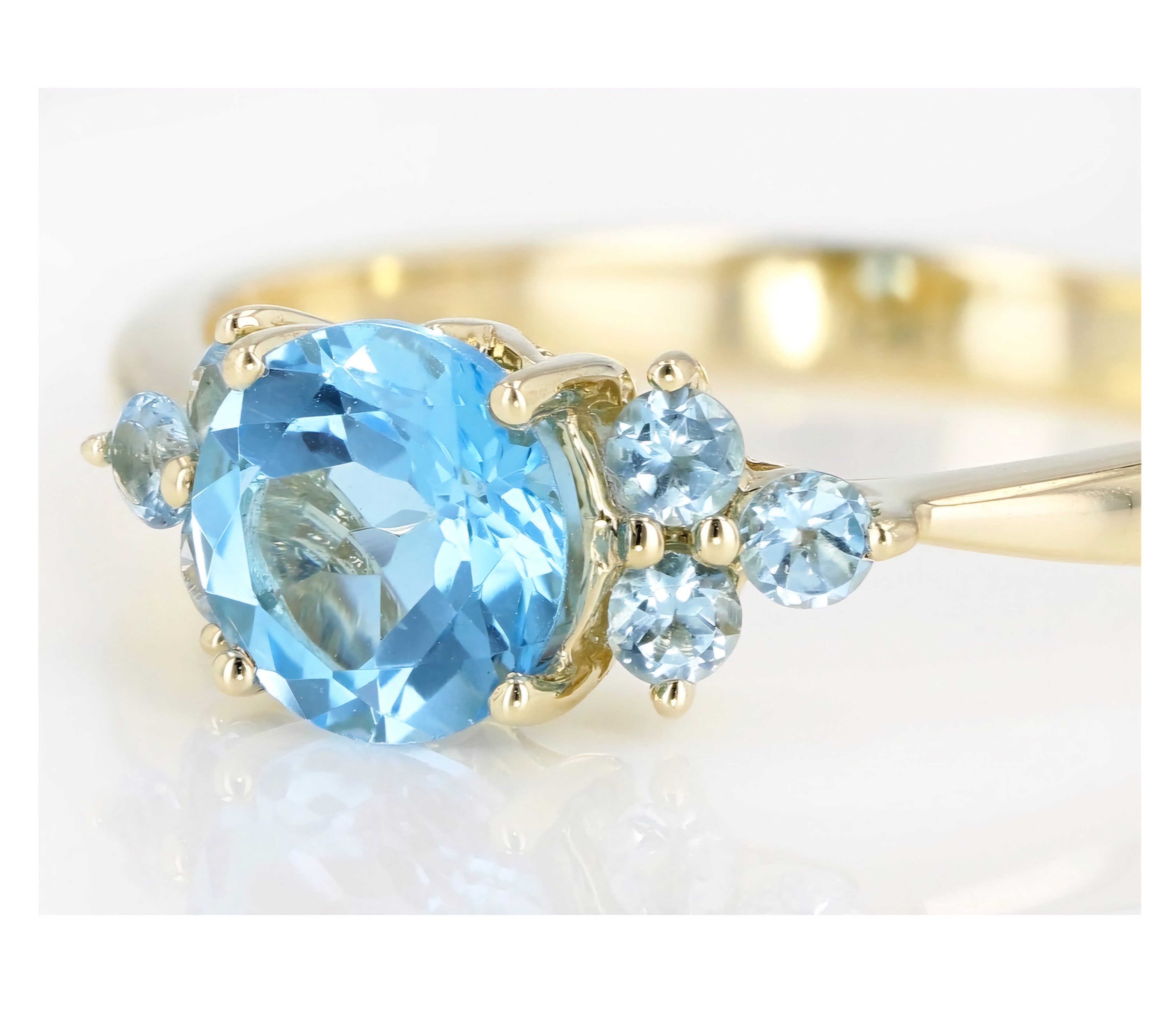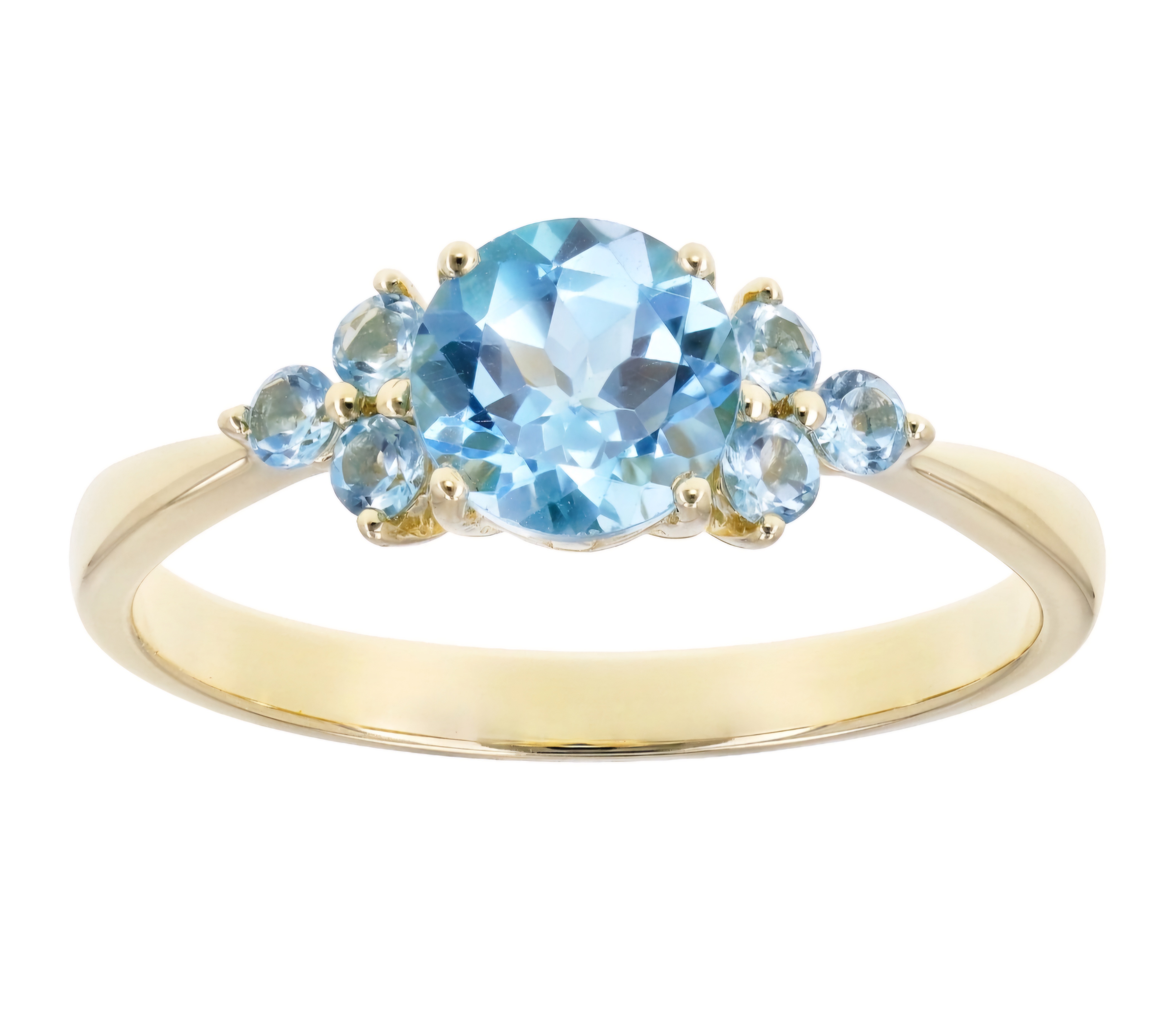 Elevate your jewelry collection with this exquisite Sky Blue Topaz Cluster Ring in 10K Yellow Gold. With a total carat weight of 1.10ctw and a stunning cluster design, this ring is sure to turn heads and add a touch of elegance to any outfit.