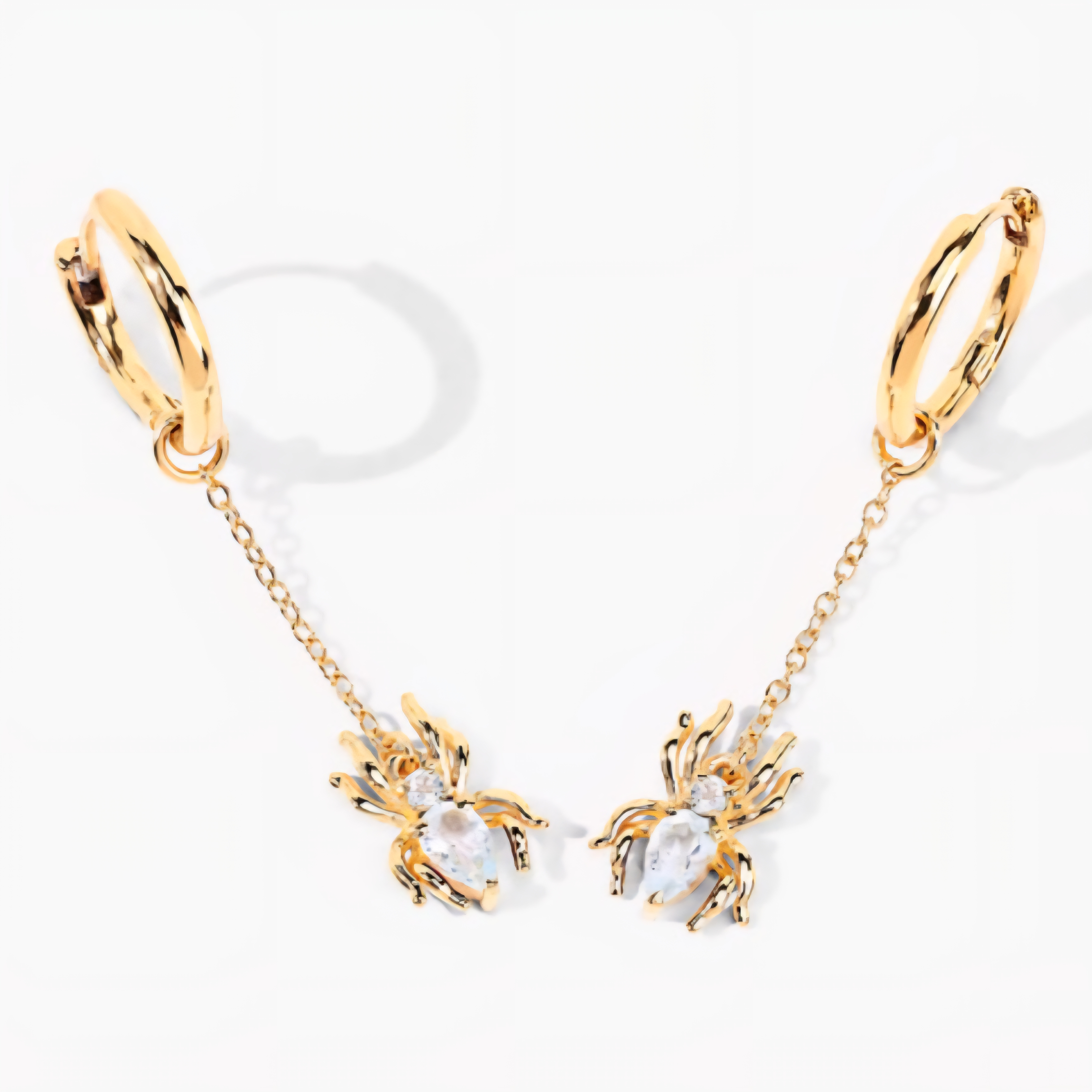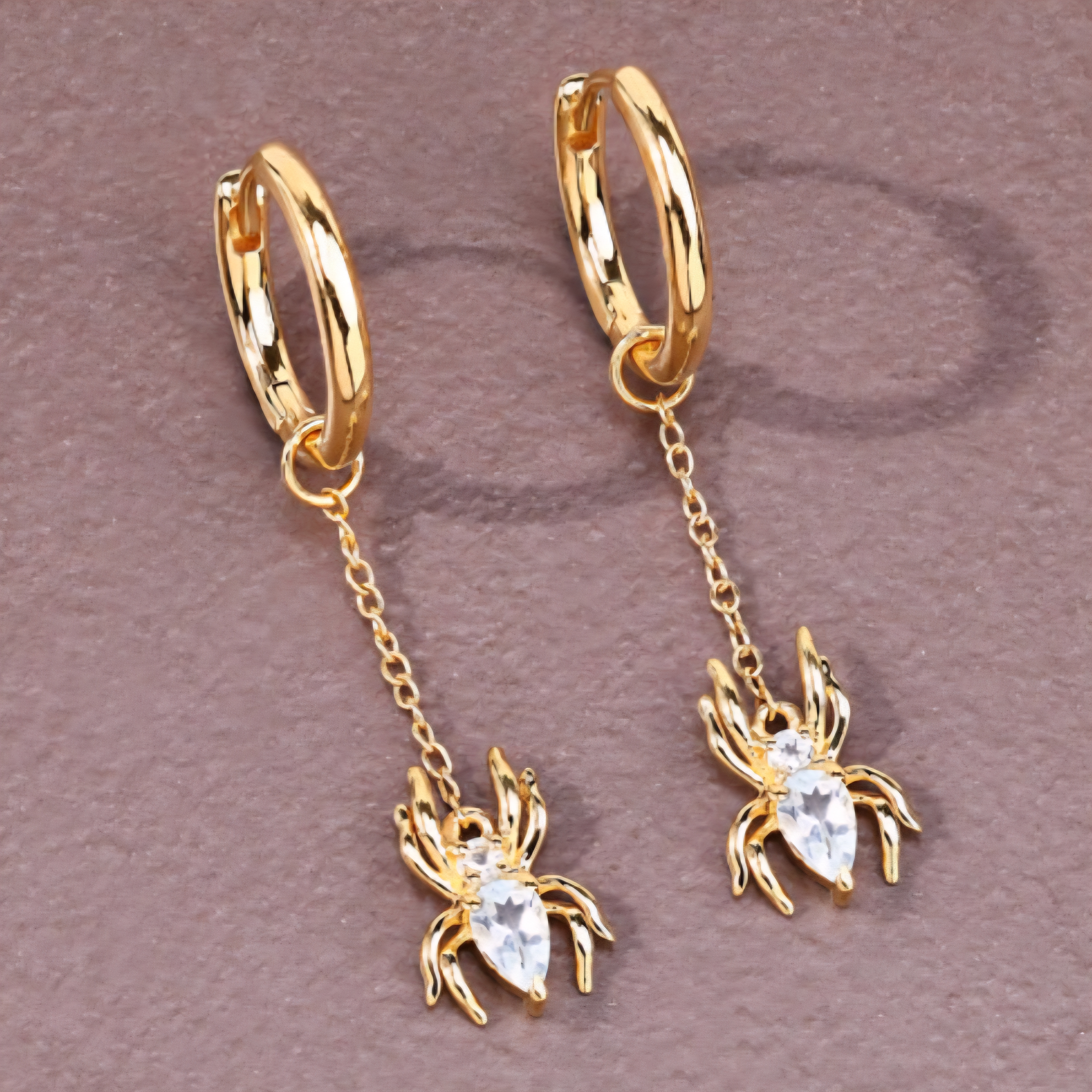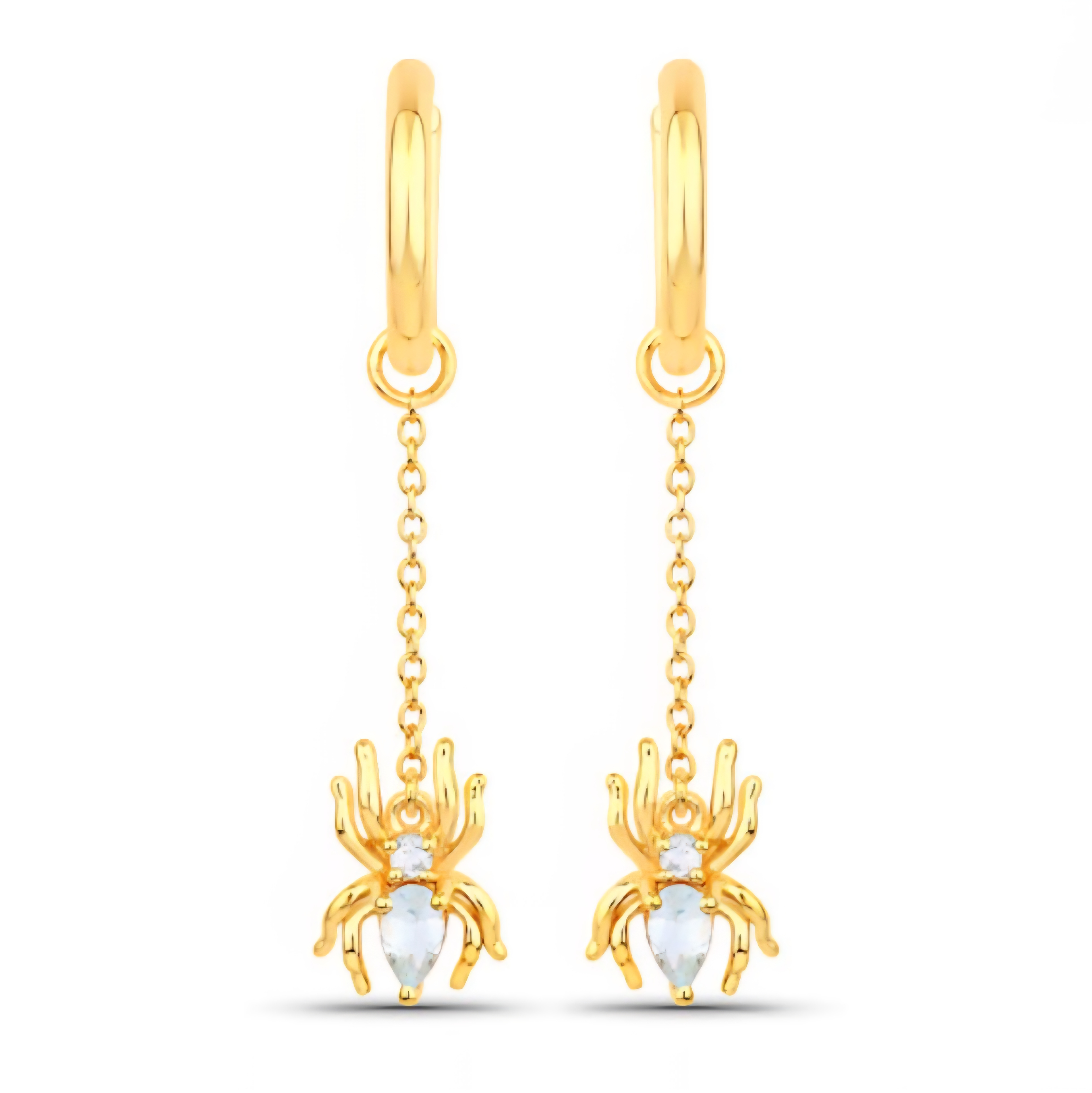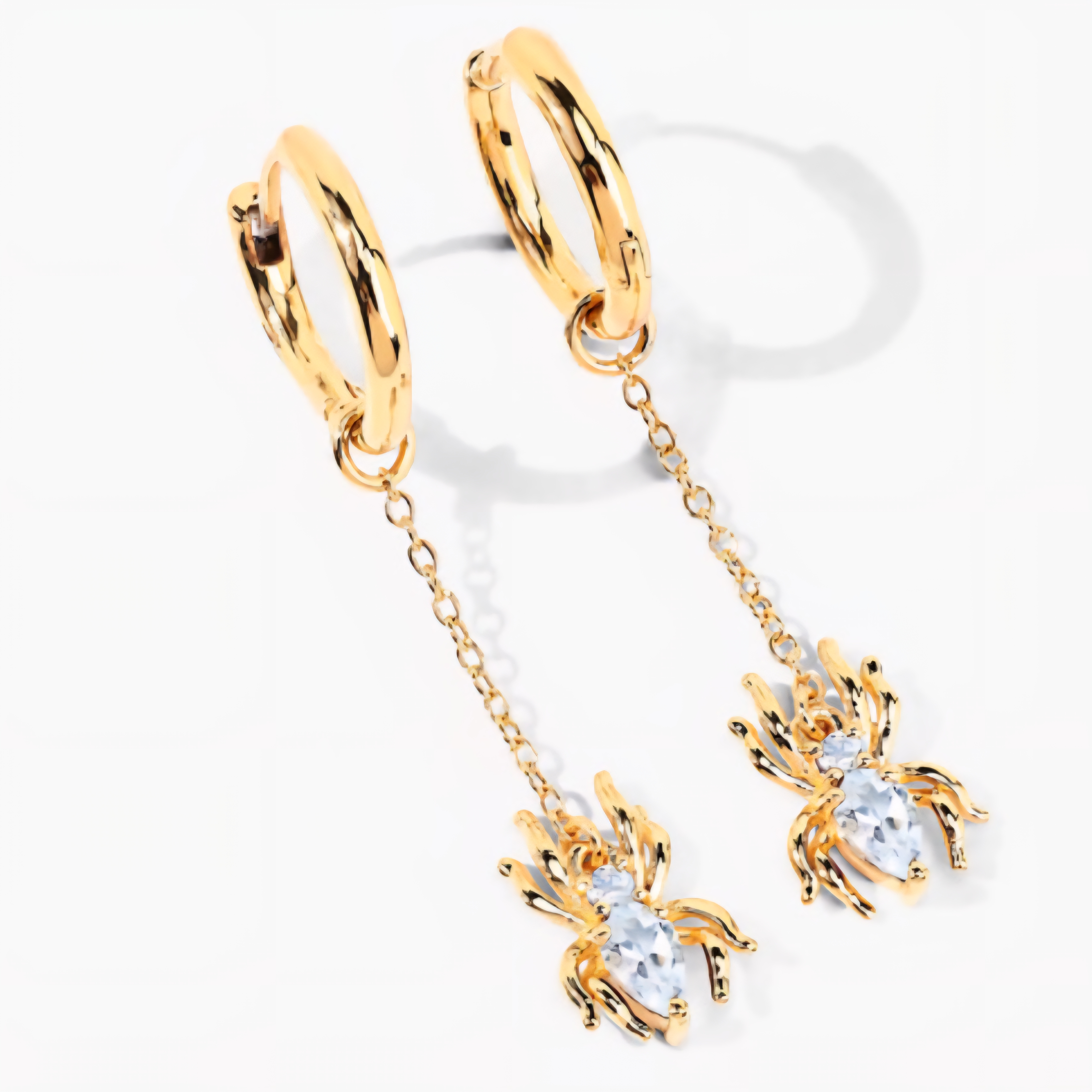 Cool, airy shimmer with a dangerous edge. These Sky Blue Topaz Spider Dangle Earrings take an unexpected turn — delicate gold hoops lead to icy blue gemstone spiders that dangle with hypnotic grace. Each one gleams with soft light, calm and dangerous all at once. It’s elegance with attitude. A perfect mix of golden warmth and topaz chill — the kind of contrast that makes people look twice. You don’t have to try to stand out. You just do.