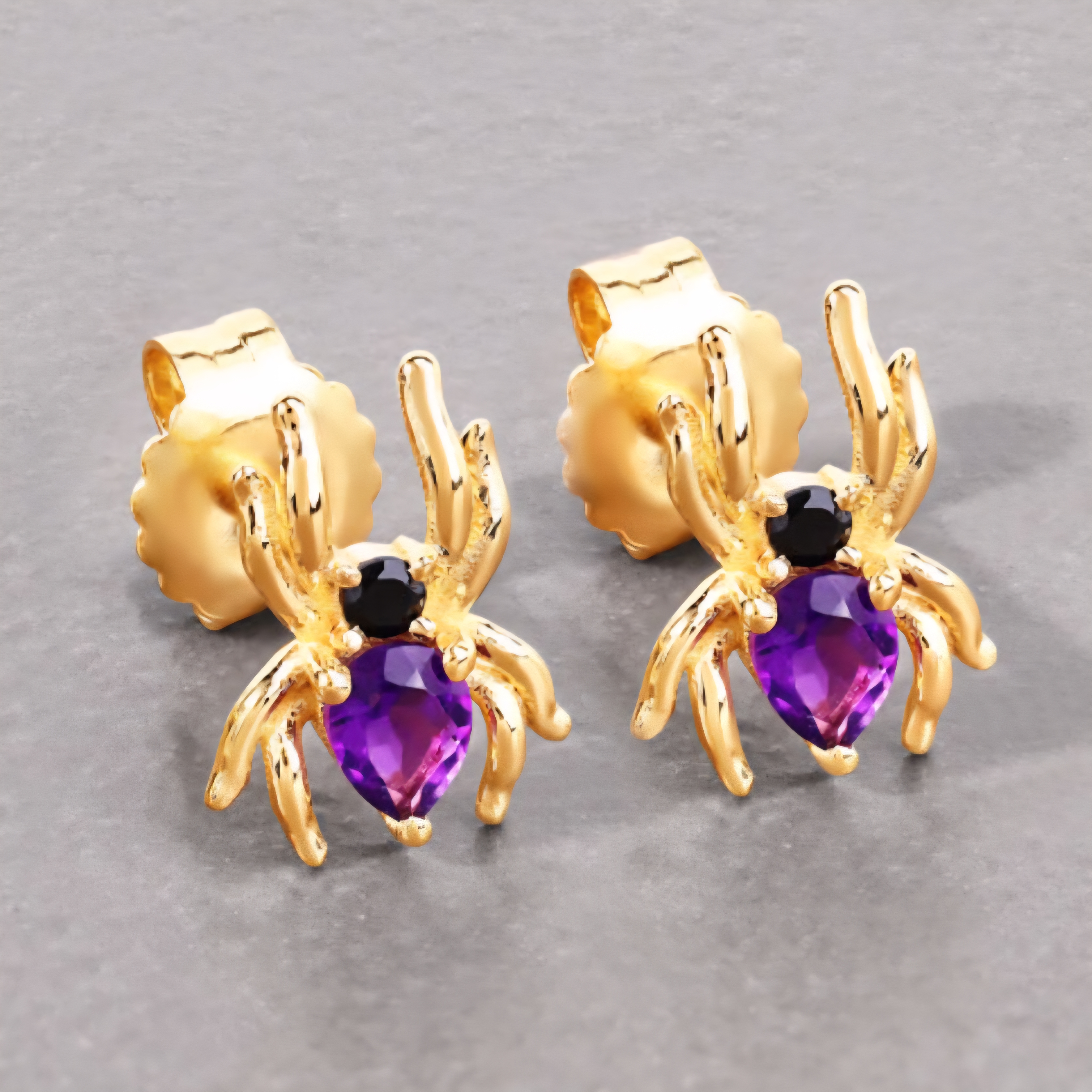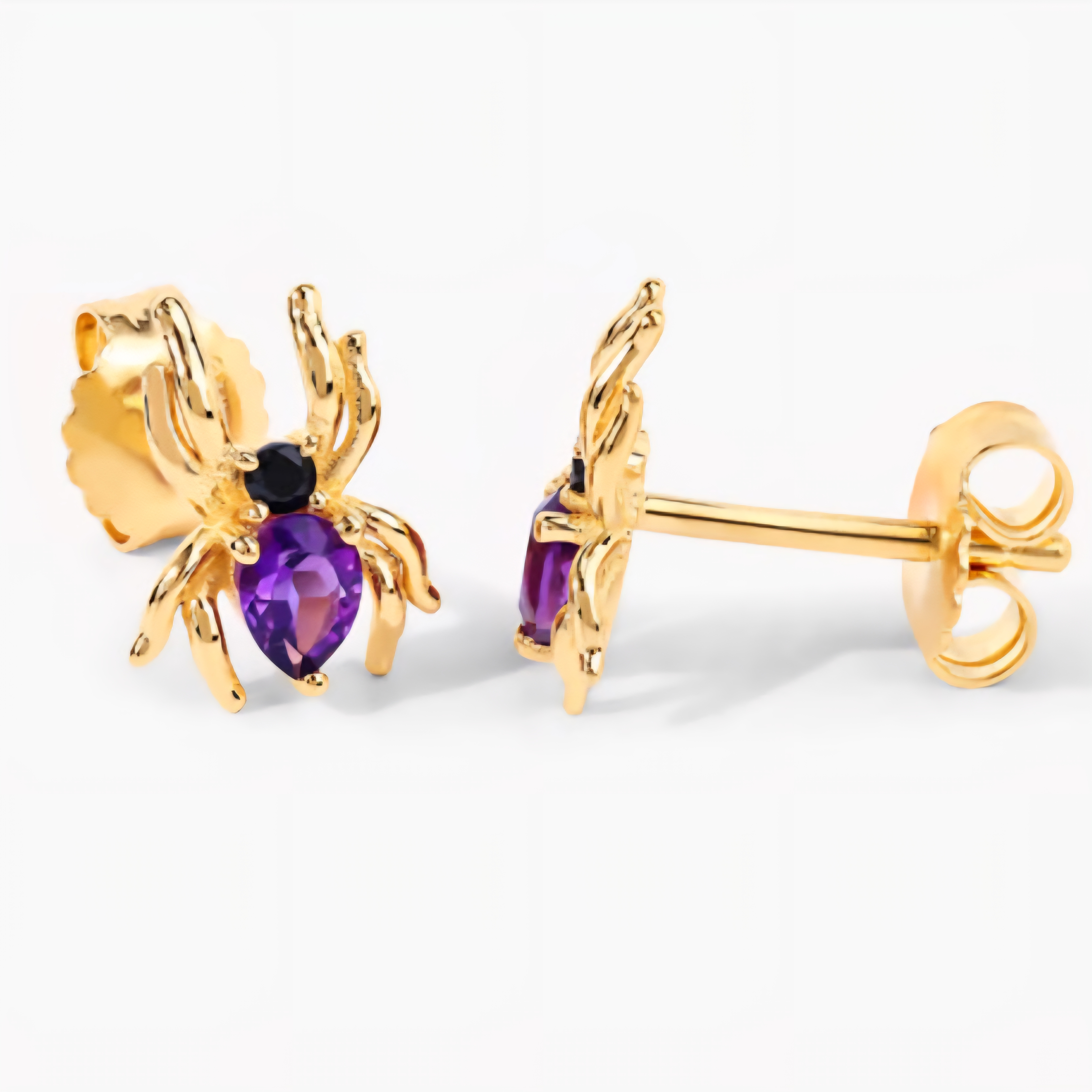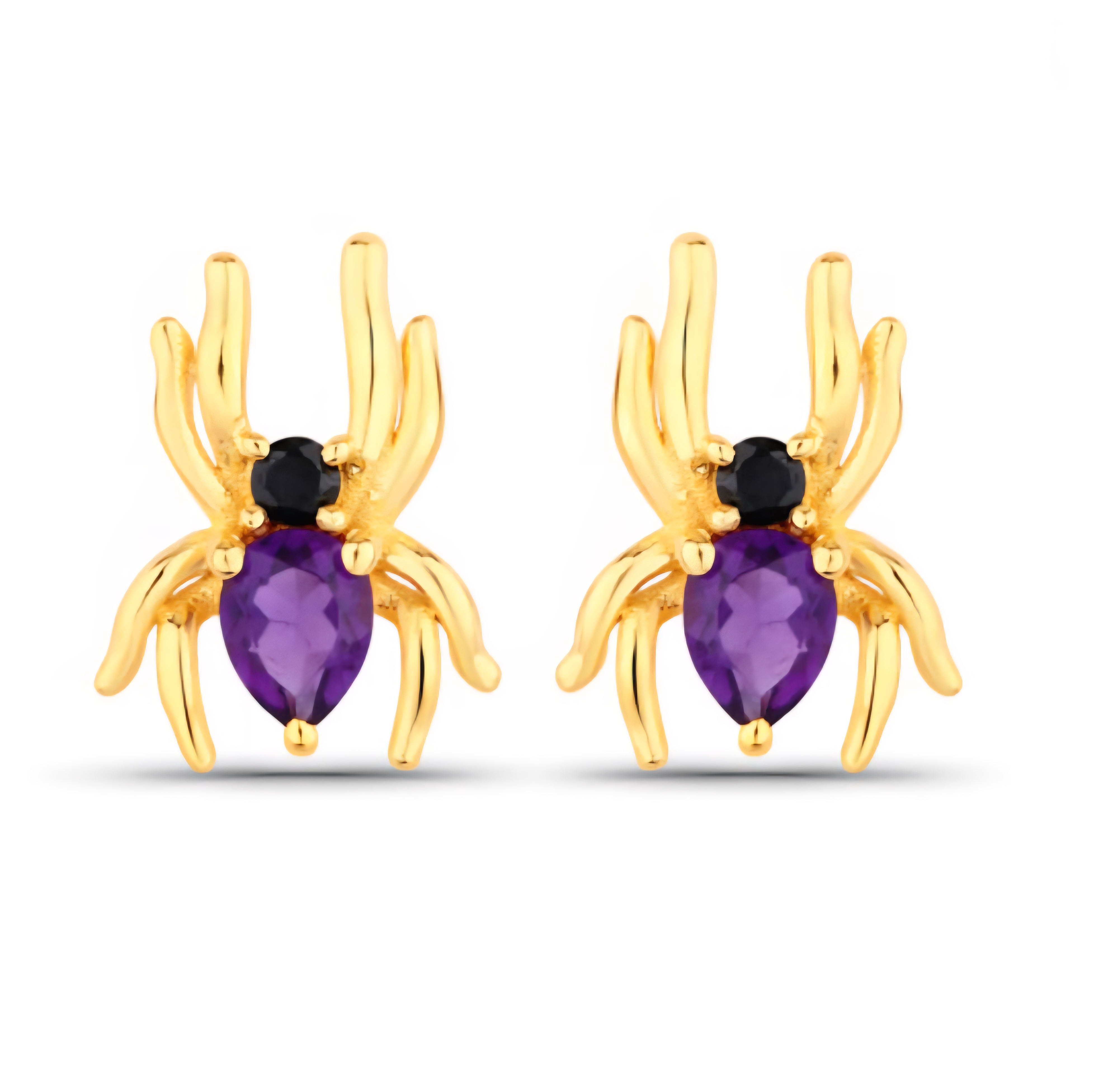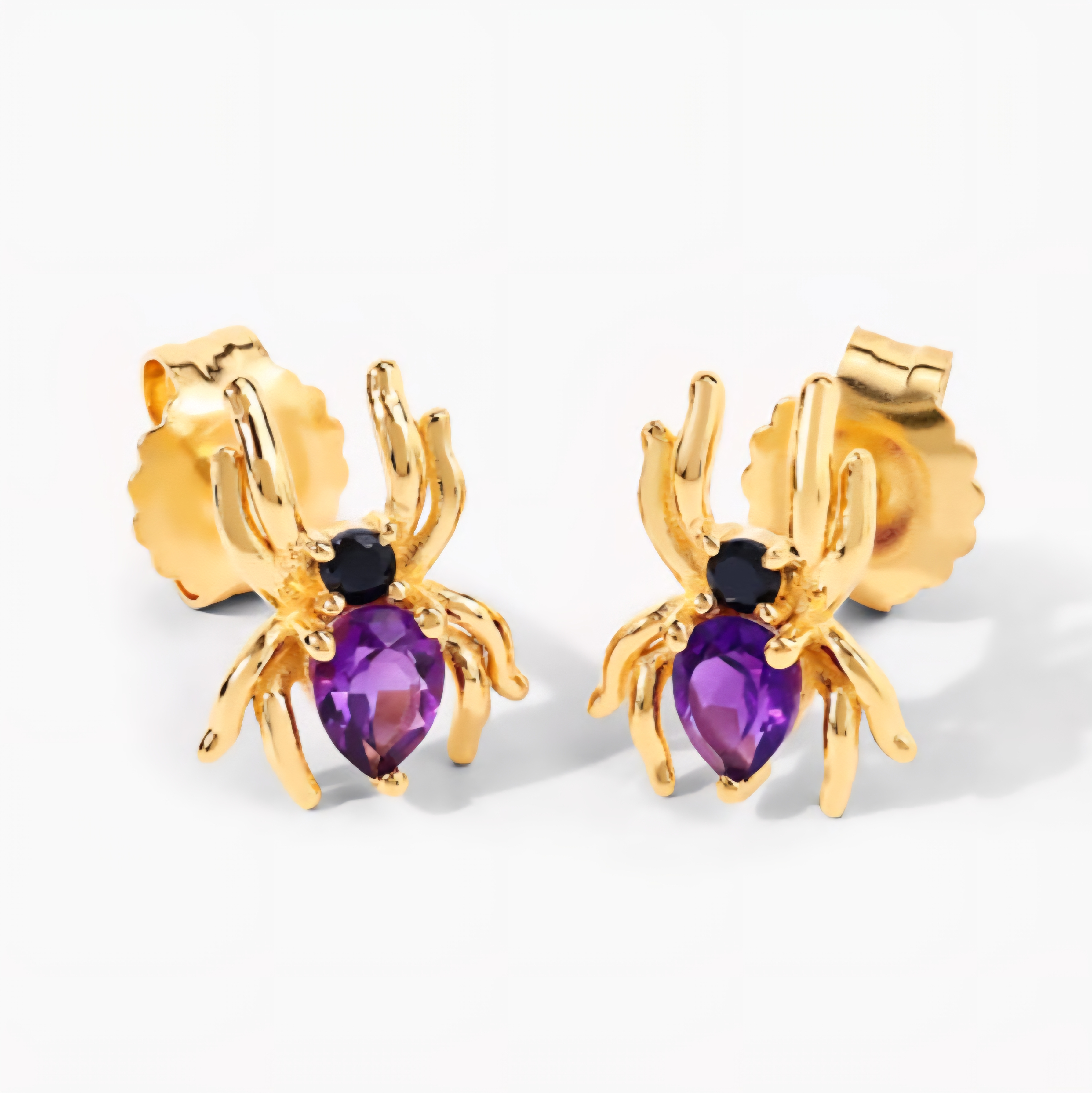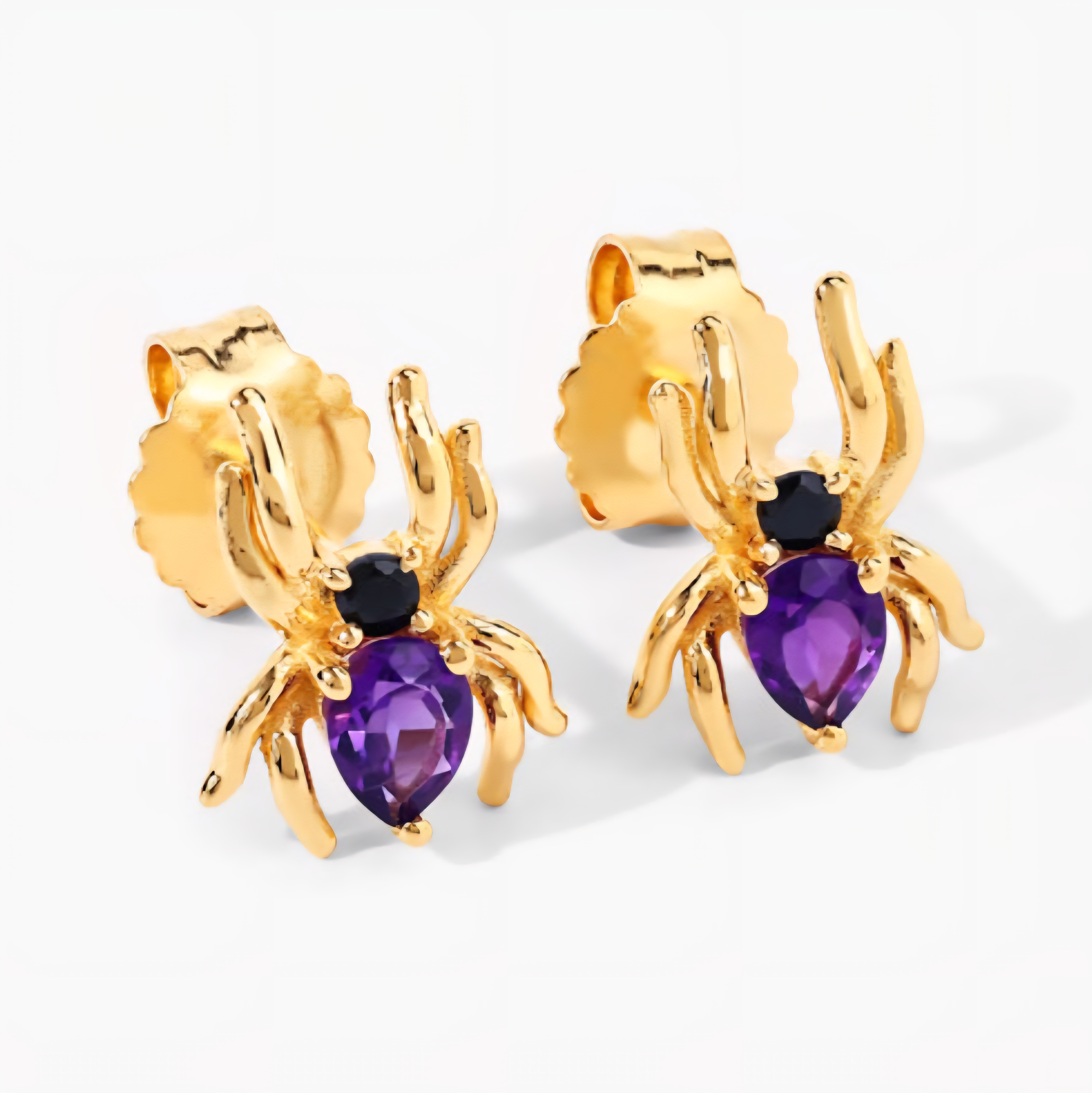 Royal purple meets dark intensity. These amethyst and black spinel spider stud earrings are small but impossible to ignore — crafted in solid 925 sterling silver with 18K yellow gold plating. Each features a 4x3mm pear-cut amethyst paired with a jet-black spinel accent, giving the design a hypnotic contrast that’s equal parts luxury and mystery. Feminine. Fierce. Fearless.