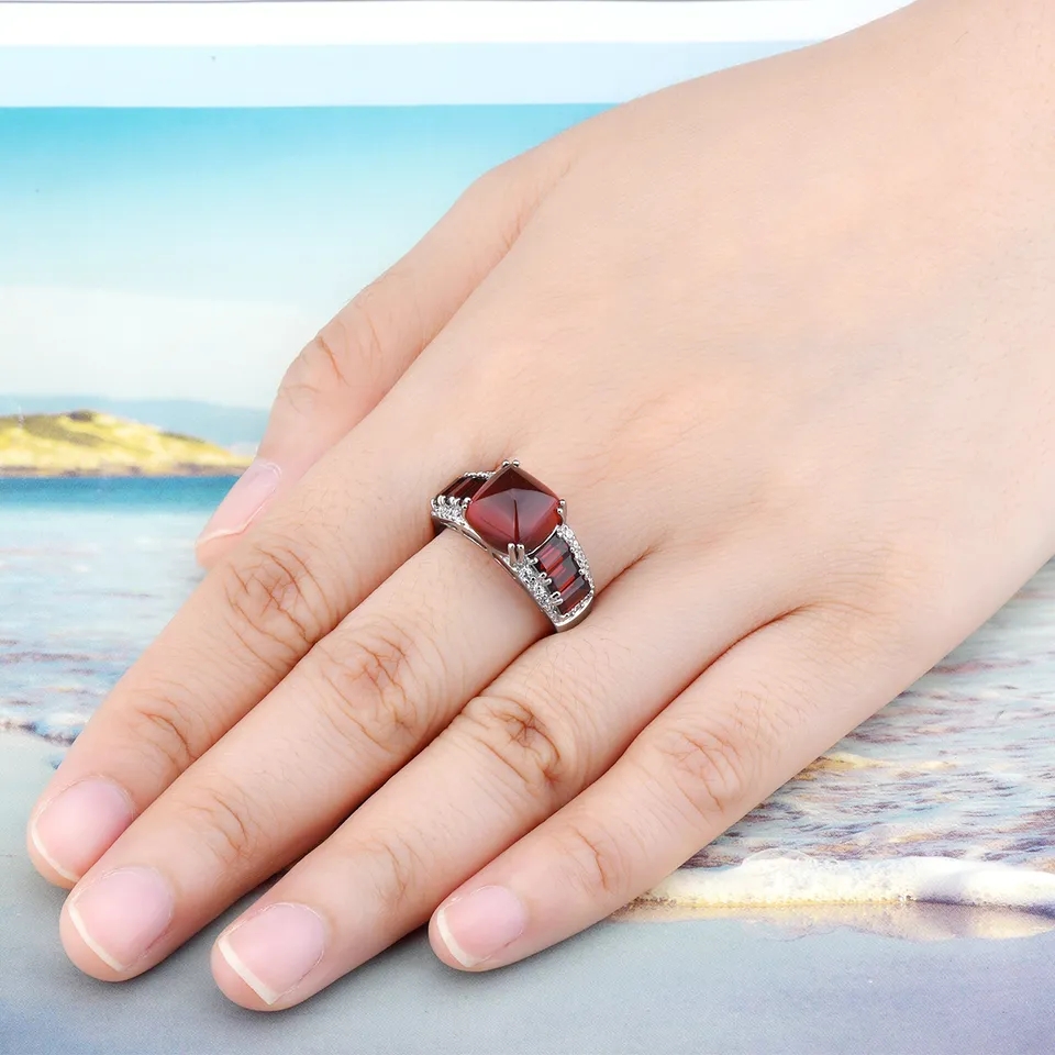Brace yourself, because this Sugarloaf Cut Hessonite Garnet and White Zircon Ring in Rhodium over Sterling Silver 9.00ctw is about to steal your heart! Featuring a jaw-dropping main stone - the fiery Orange Hessonite Garnet in a magnificent Sugarloaf cut - this ring is perfect for those who prefer a touch of audacity. And as if that wasn't enough to make a statement, we've added accenting Emerald Cut Red Garnets and twinkling White Zircon Rounds to the mix. The result? A dazzling piece that radiates confidence and style. Ladies and gents, it's time to let your finger do the talking with this stunner!