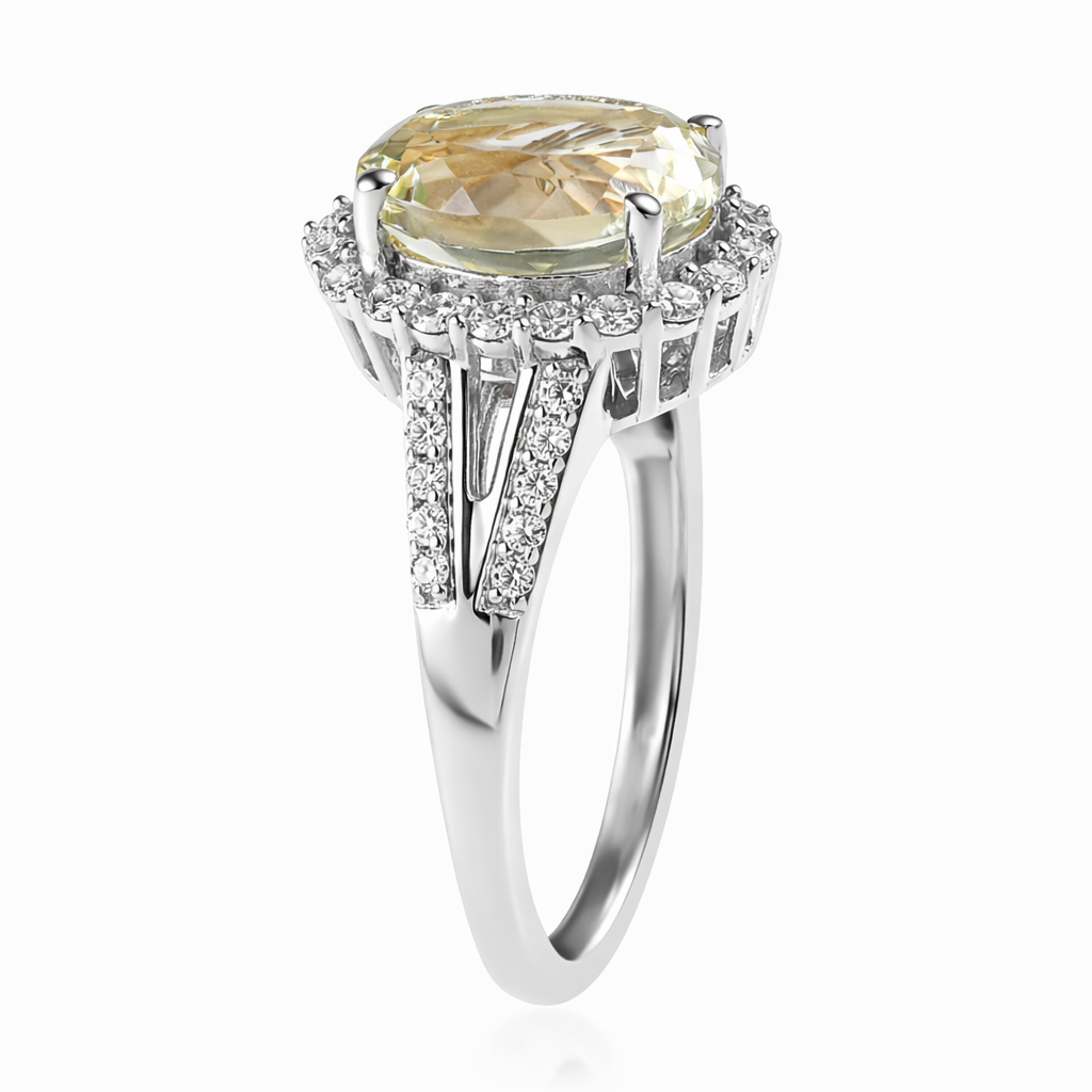 Crafted in solid 925 sterling silver and finished in bright rhodium plating, the ring maintains a clean, cool tone that contrasts beautifully with the warmth of the triphane. The construction is intentionally low to mid-profile, keeping the ring wearable for everyday use while still reading as a statement.