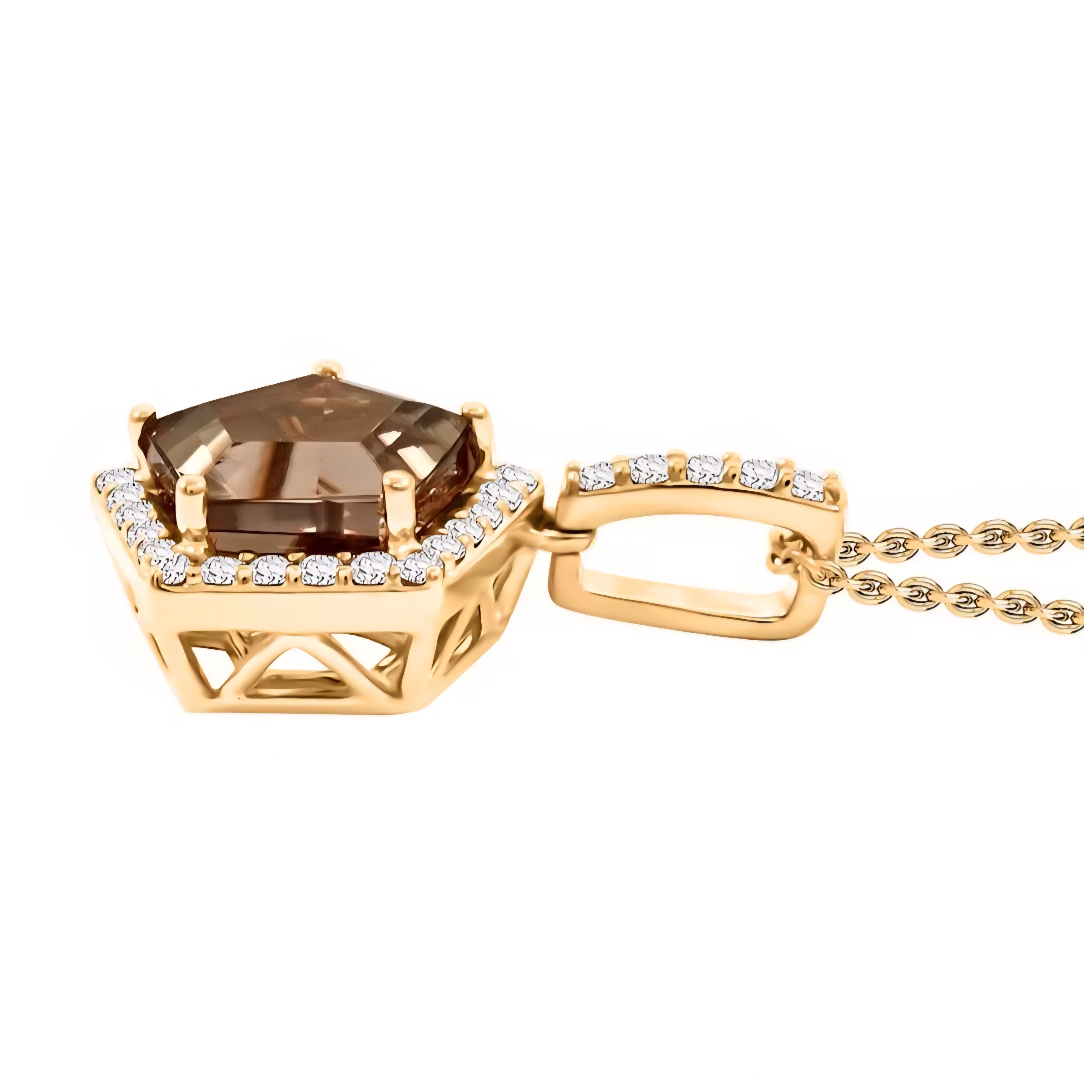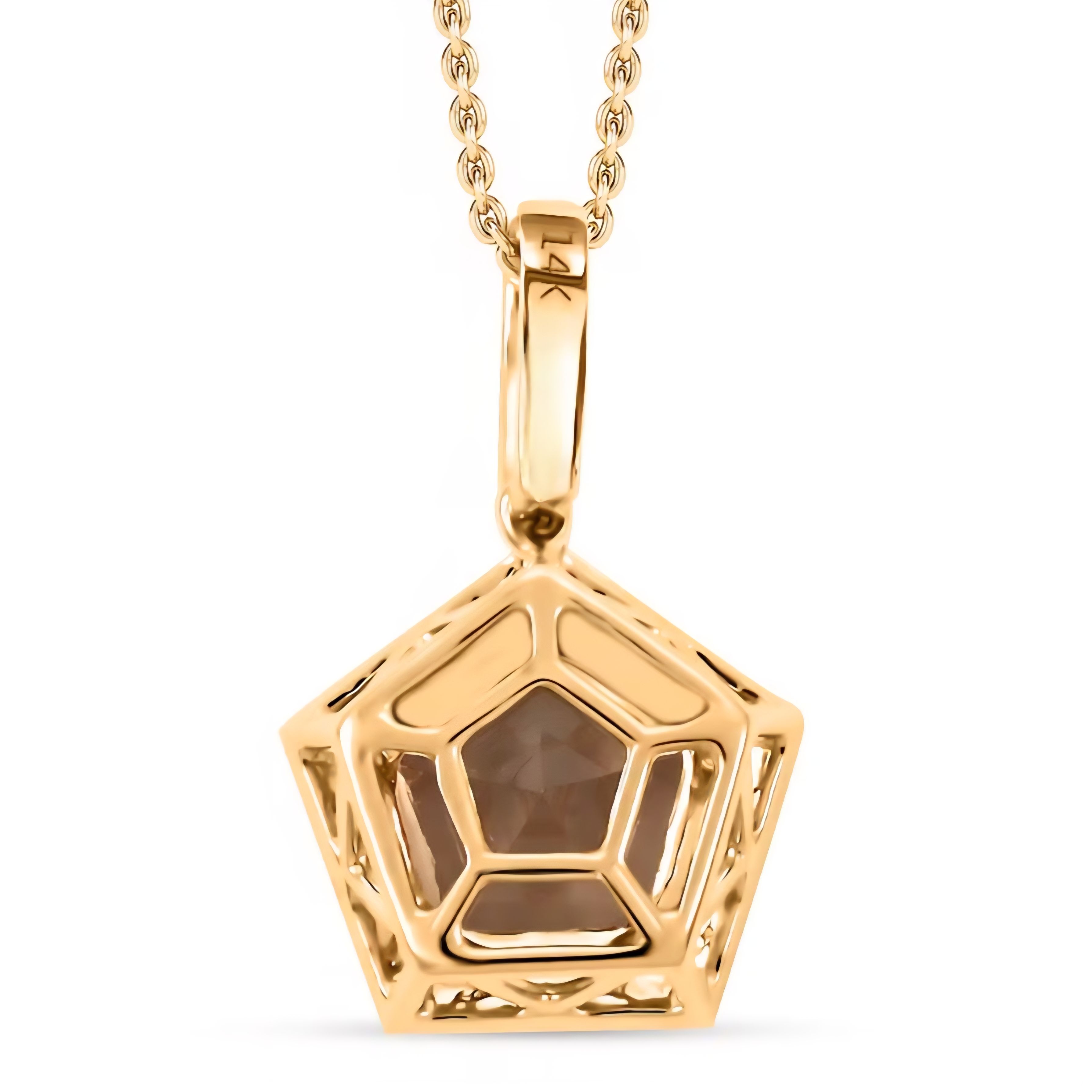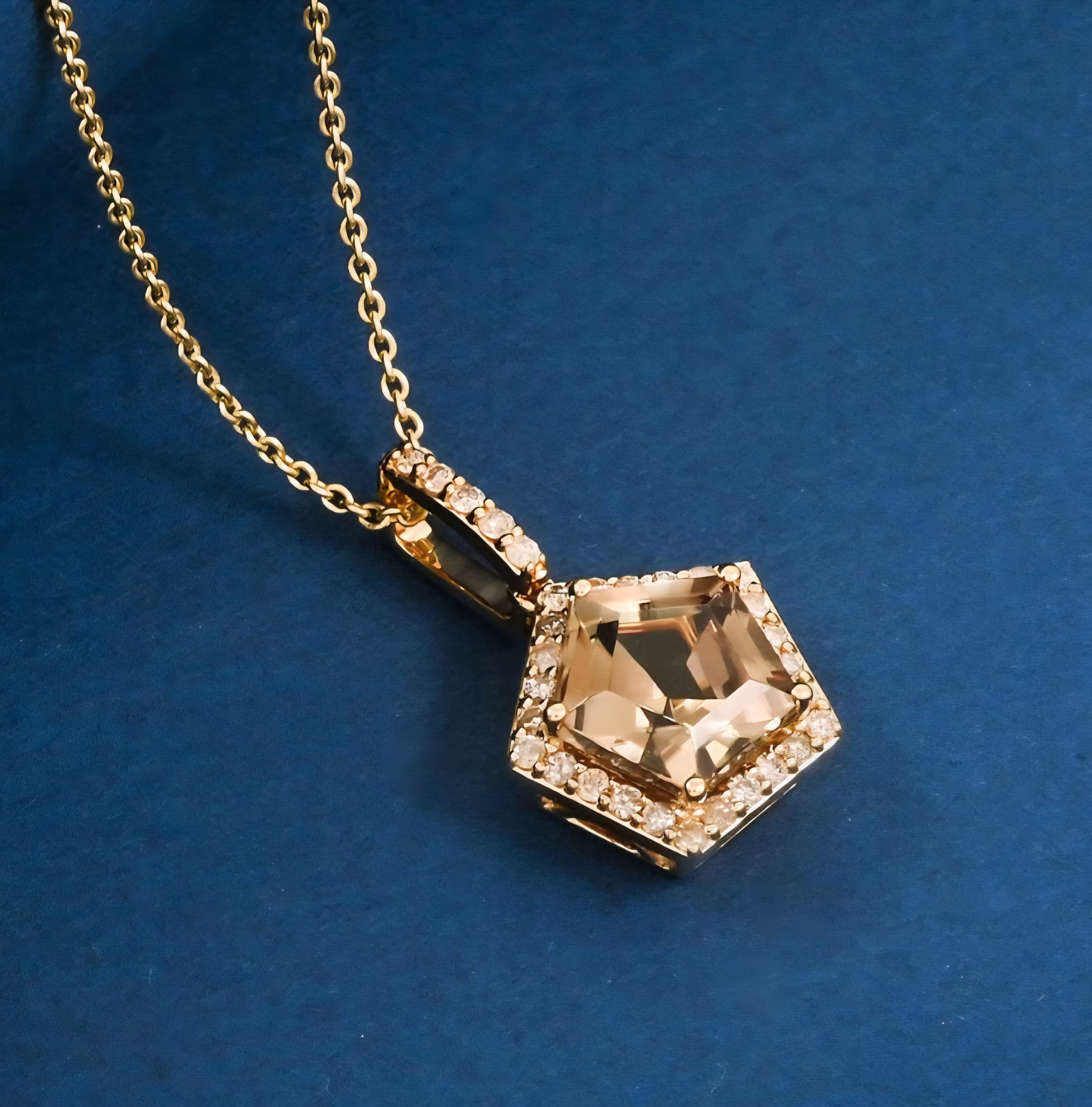 Crafted in solid 14K yellow gold, the setting enhances the warmth of the stone while maintaining crisp definition around the edges. The diamond-set bail adds additional sparkle and ensures the piece carries brilliance from every angle.