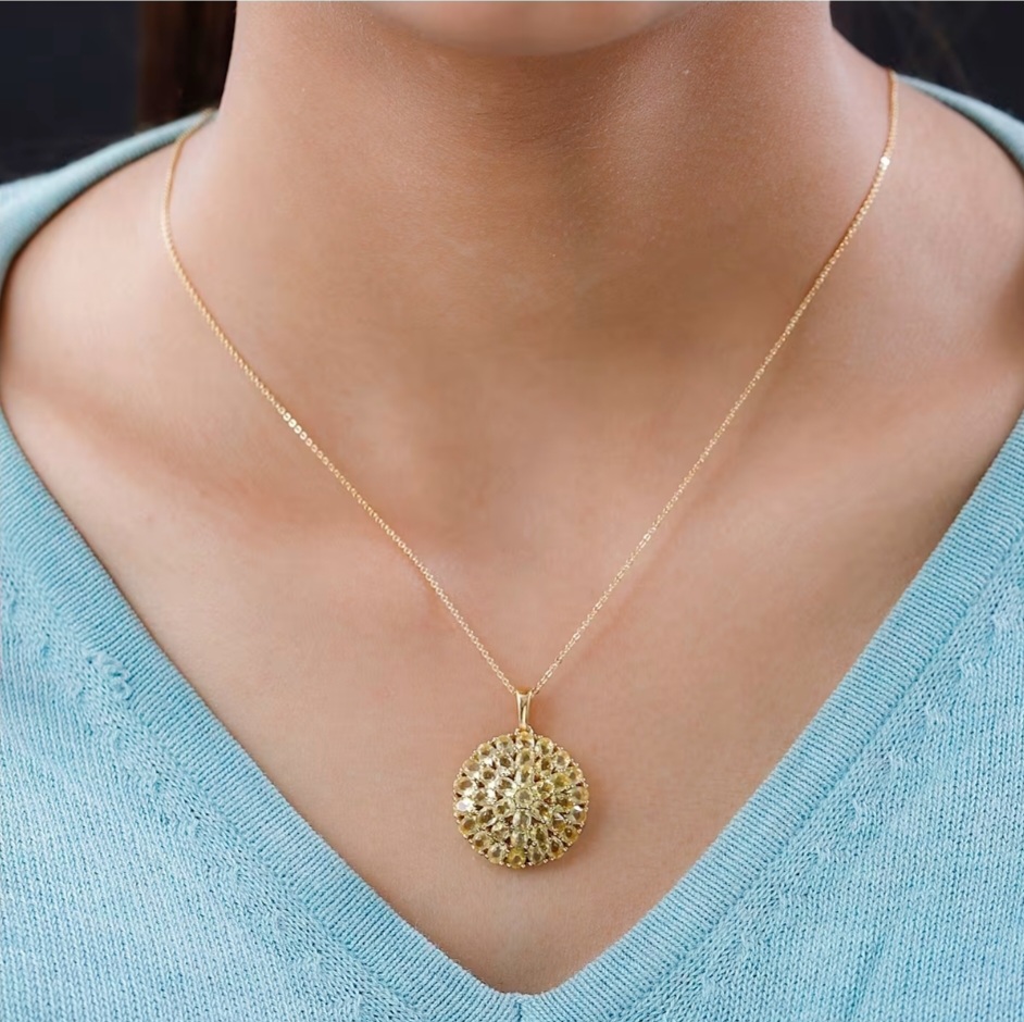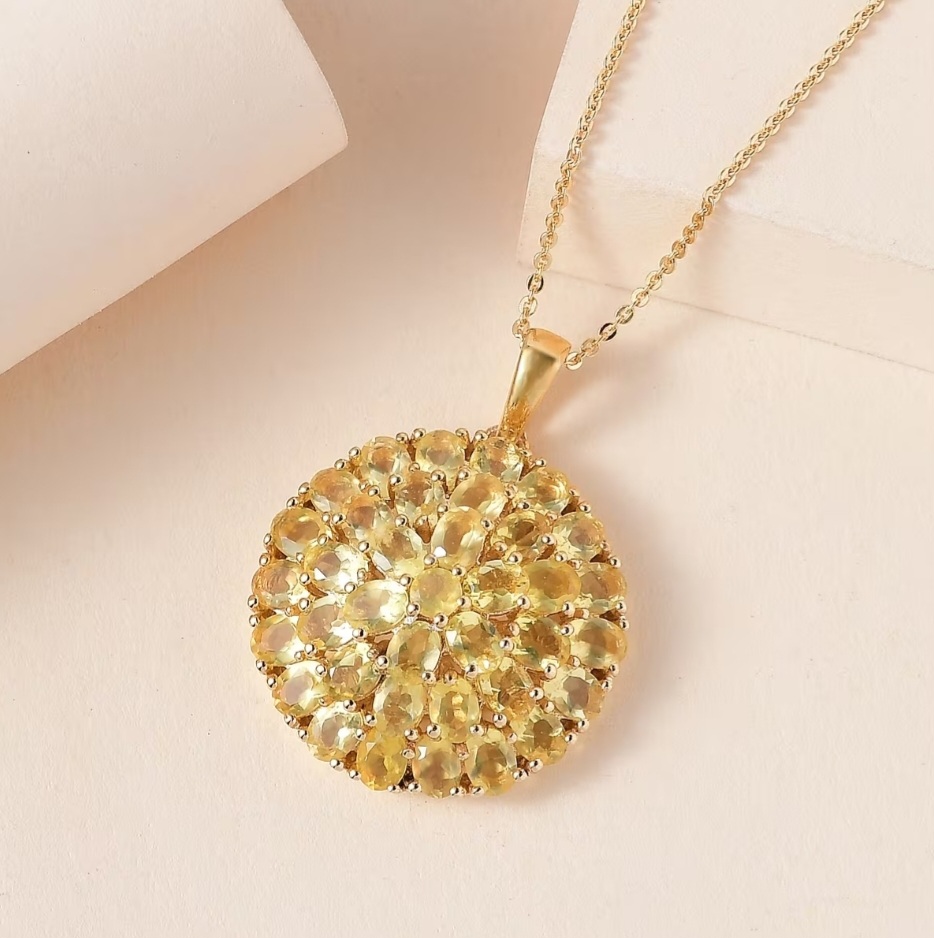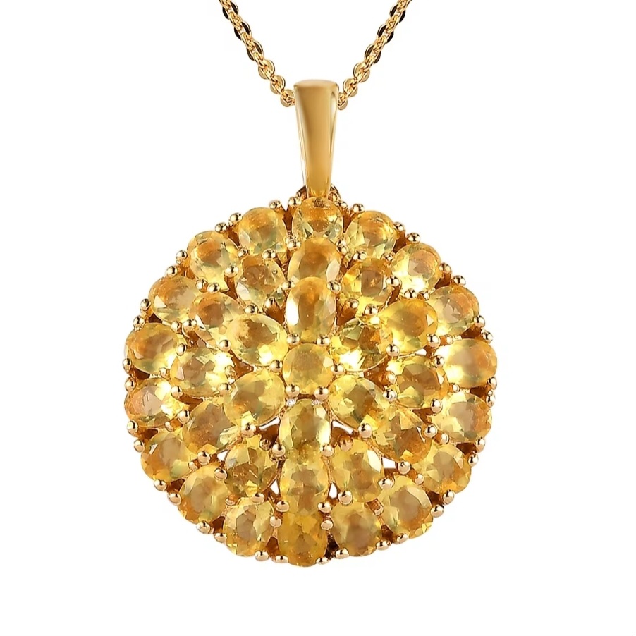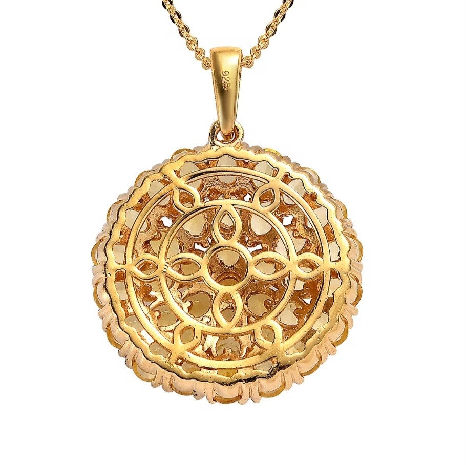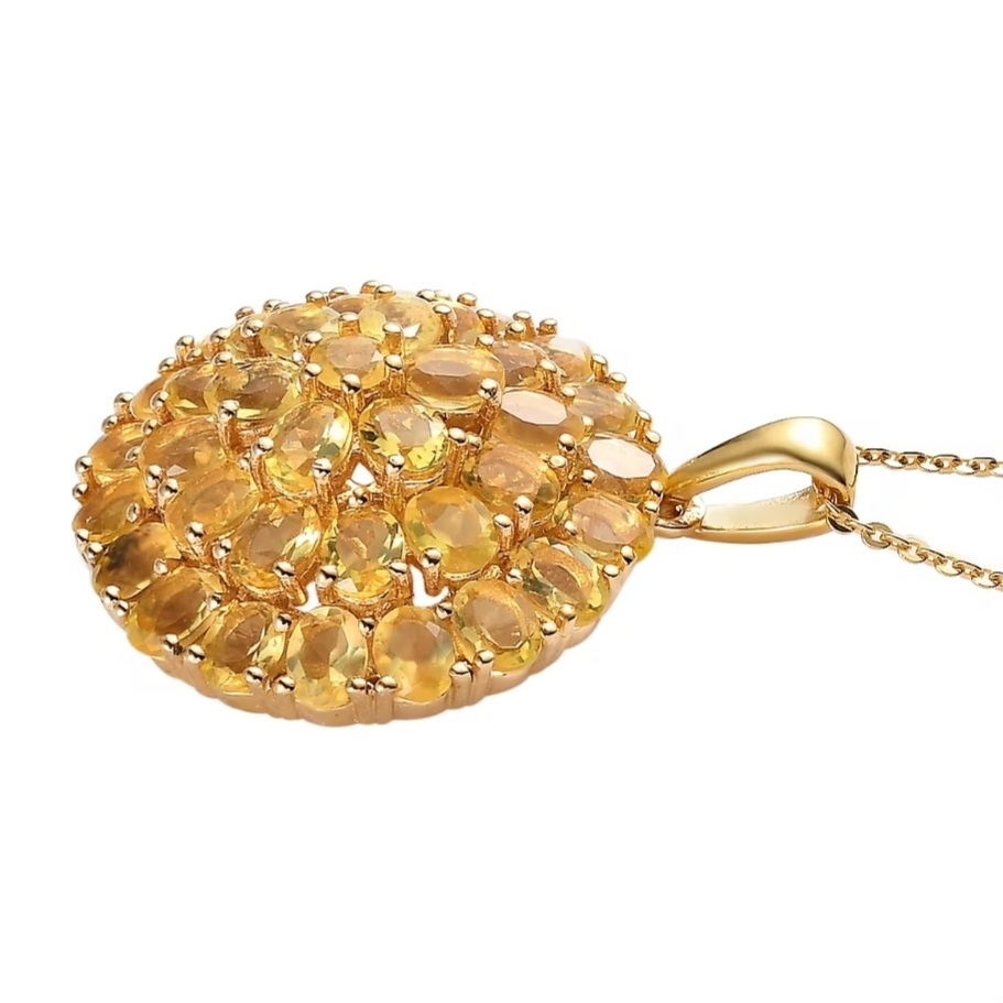 A bold, golden burst of color and craftsmanship. This Yellow Opal Cluster Pendant captures the glow of Tanzanian opal in full bloom — a radiant mosaic of oval and round stones layered for dimensional fire and depth. The high-domed, pavé-style setting amplifies brilliance from every angle, while the solid sterling silver core gives strength beneath the 18k yellow gold finish. Smooth lines, balanced symmetry, and an unmistakable golden tone make this pendant a confident statement of modern luxury — bright, dynamic, and unapologetically refined.