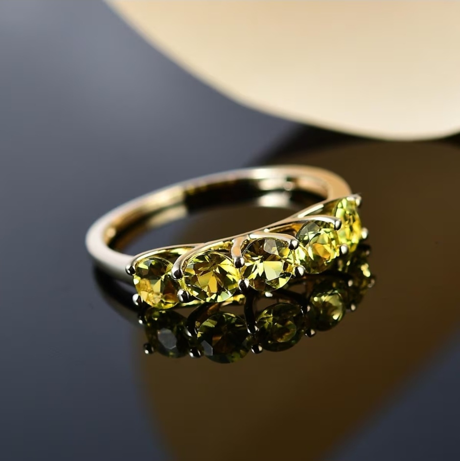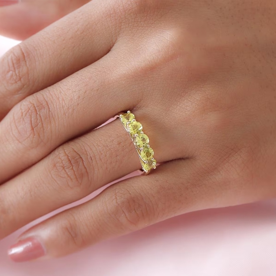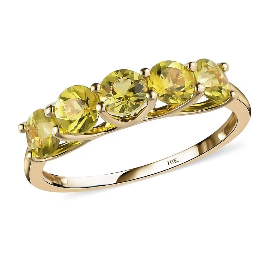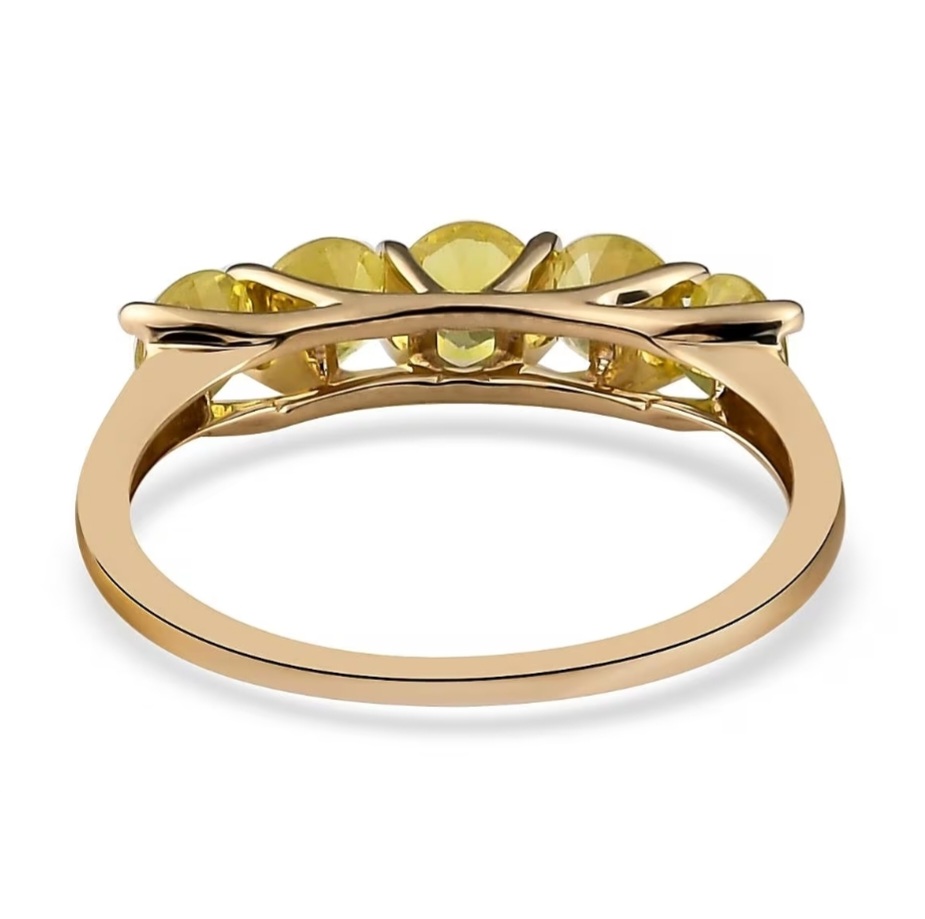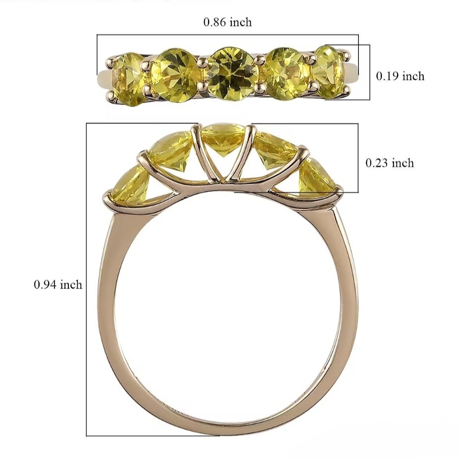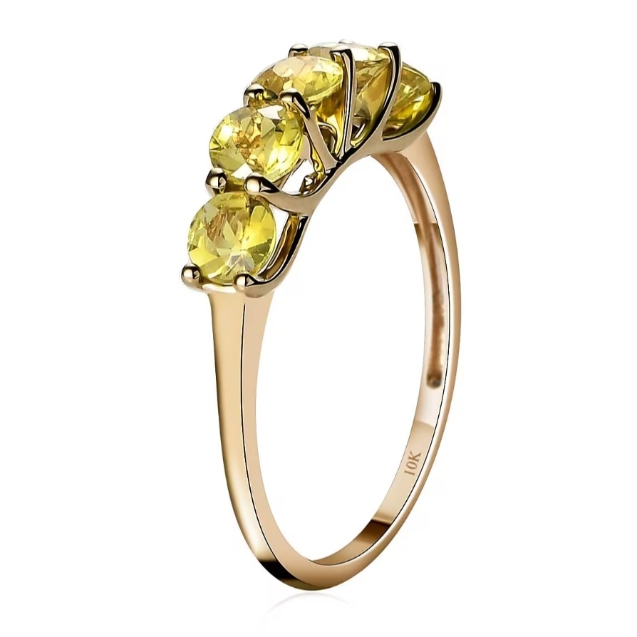Crafted in solid 10k yellow gold, the warm metal amplifies the gemstones’ natural glow, creating a cohesive ribbon of golden intensity around the finger. The look is classic, structured, and endlessly wearable — a five-stone band that doesn’t just sparkle… it radiates.