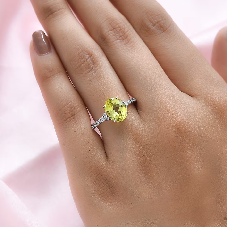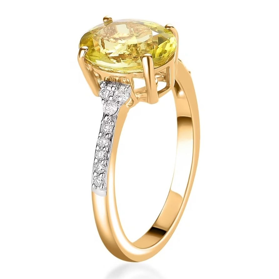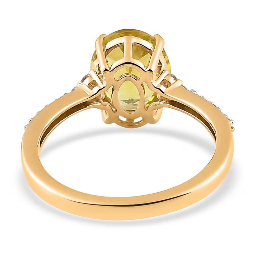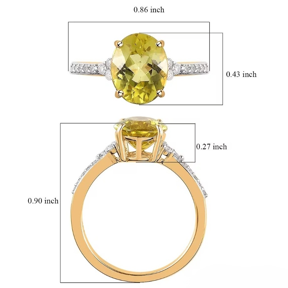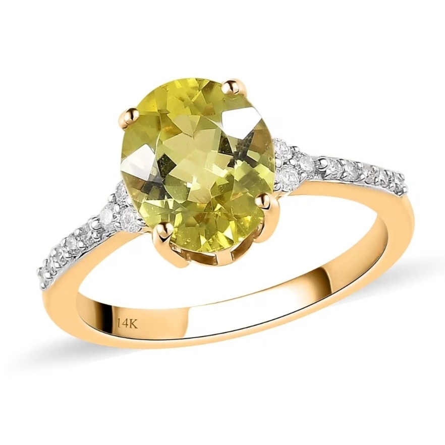 This ring is all about that rich canary-yellow fire—an elegant 10×8mm oval tourmaline with the kind of depth and clarity that reads instantly upscale. Its elongated silhouette sits in a classic four-prong setting, framed by a clean row of white diamonds that taper into the shank for a refined, effortless lift. The 14k yellow gold gives the stone a warm, saturated backdrop, while subtle rhodium-tipped prongs keep the diamonds bright and crisp. It’s a timeless, wearable luxury piece—polished, confident, and built around a genuinely standout tourmaline.
