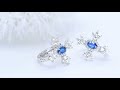 These designer earrings feature natural Sapphire ovals and White Zircon Rounds 1.00ctw. Crafted in solid 925 Sterling Silver with your choice in Rhodium Plating, 18K Yellow Gold Over, or 18K Rose Gold Over 4.5g