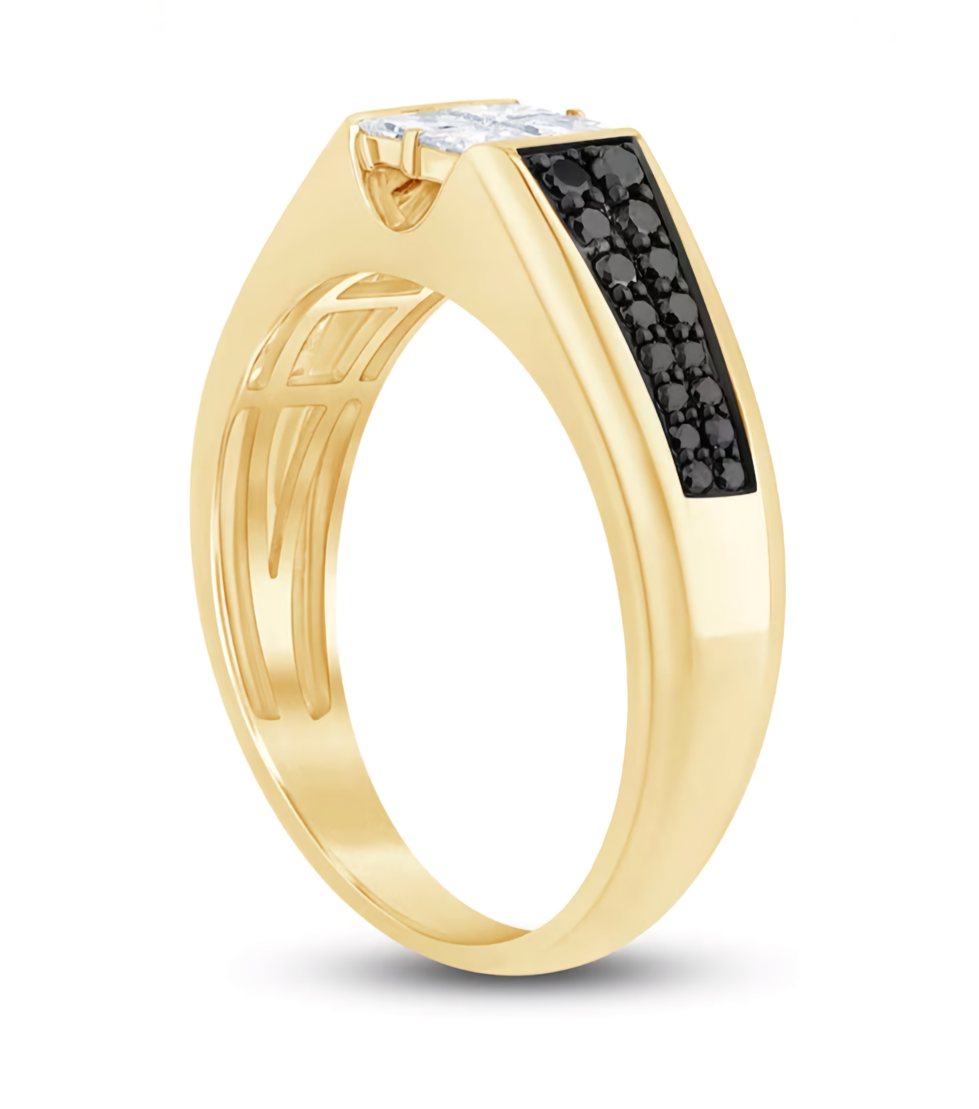 Elevate your look with this stunning White & Black Diamond Gents Ring in Black Rhodium & 14K Yellow Gold 1.00ctw. The intricate design showcases a combination of white and black diamonds set in luxurious yellow gold for a sophisticated finish.